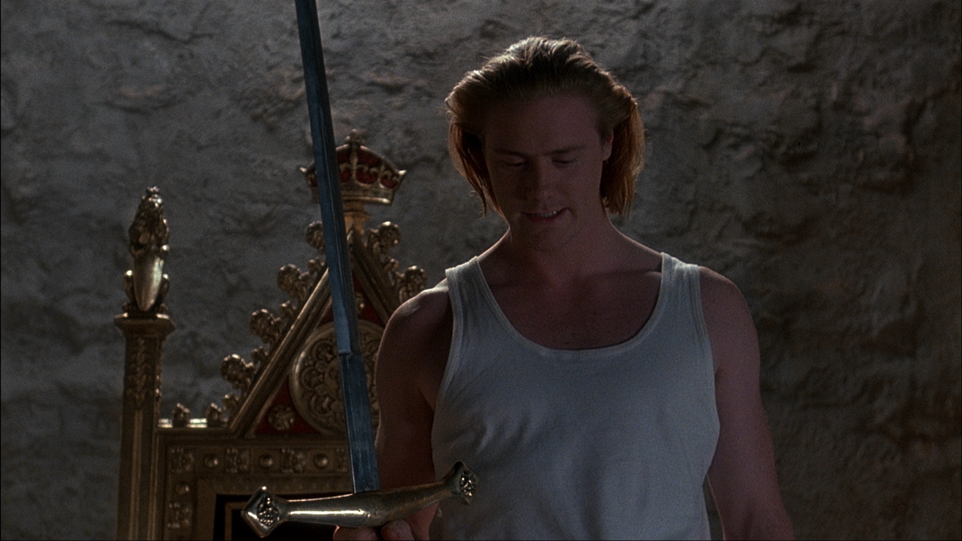 Fine Line, Jarman had his biggest theatrical release in the U.S. with his next film, Edward II, an adaptation of Christopher Marlowe's tragedy about the turmoil begun when the titular king (Waddington) brings his exiled lover, the lower class Gaveston (Tiernan), back into the fold and grants his privileges that displease those around him. Chief among his enemies during the power struggle are Edward's wife, Isabella (Swinton), and military leader Lord Mortimer (Terry), who becomes her lover. Meanwhile Edward and Isabella's neglected son becomes a pawn in the feud, with a darkly poetic outcome in store. Jarman's vision places the drama in a stark, spare setting of gray walls and dark lighting, with modern elements added like recurring Outrage gay rights activists and, in one of the most memorable scenes, an appearance by Annie Lennox singing "Ev'ry Time We Say Goodbye."