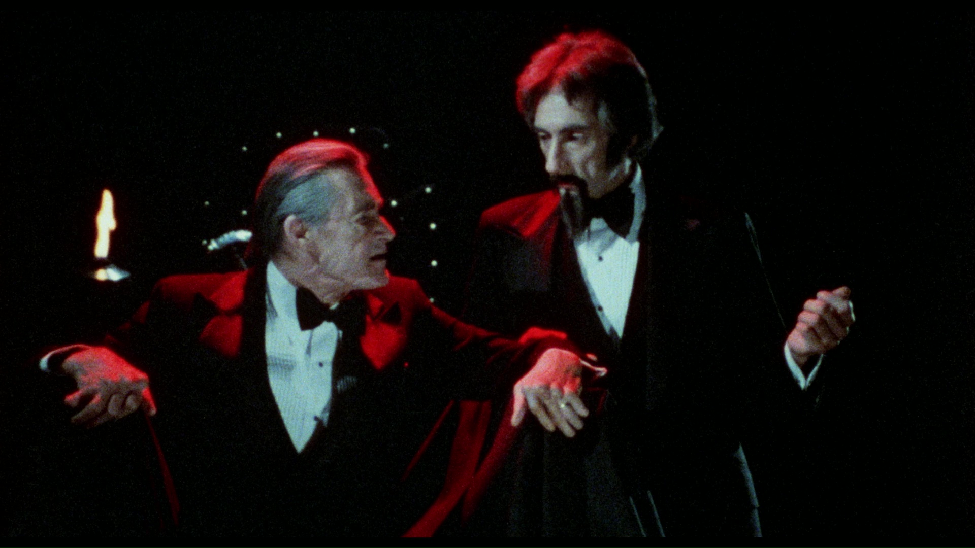 major digital chicanery done to make them look more modern. The restoration of the original framing to Doctor Dracula at least gives it more of a professional appearance, and that crazy red lighting during the climax looks nice and vivid. The DTS-HD MA English mono tracks both sound perfectly fine, with optional English SDH subtitles provided. The Lucifer's Women trailer shows up here in a fresh new transfer, and a couple of substantial new goodies have been added as well. A new interview with Thomas (20m4s) is virtually with the price tag all by itself as he spins out an amazing, candid account of his showbiz life including his time on Broadway, a coke-smuggling bust that caused him to temporarily change his porn name, his introduction to porno chic in San Francisco via Autobiography of a Flea, his segue into R-rated moviemaking with this film (including an unexpected issue that popped up during his big love scene), and his lack of professional discipline that kept him from pursuing more mainstream roles. Finally and most illuminatingly, Sherman himself contributes an audio commentary to Doctor Dracula that lays out about how the original film came about and ended up in his library, the reworked version ended up going to television, and Adamson became involved in doing the new footage. He also points out a lot of relevant faces on screen and notes that some nudity was actually shot for the bathtub attack scene but never used. Needless to say, the whole package is an unexpected slice of fringe cinematic scholarship that makes the world a slightly better place. DOCTOR DRACULA (VINEGAR SYNDROME BLU-RAY)