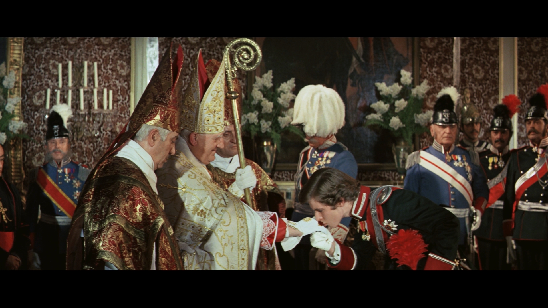 Fortunately that English version – or what exists of it – can finally be heard in the 2017 Arrow Academy dual-format release, which reinstates it for both the film’s longest theatrical edition and the five-part television version created for Italian TV (and which previously appeared on DVD from Kinowelt in Germany). It makes a huge difference hearing actors like Trevor Howard, John Moulder-Brown (The House That Screamed), Romy Schneider, and Berger himself finally in synch and speaking with their own voices, and for the fragments that were never synched up with the English track, Italian audio with English subtitles has been dropped in (a la Deep Red). Standard English SDH subs are offered as well, and the usual Italian track can be played with optional English subtitles. Previous home video releases before the 2016 German (non-subtitled) Blu-ray were a pretty sorry bunch, including unwatchable flat letterboxed transfers in the U.S. and U.K., but the new HD presentation is beautiful and finally restores the lustrous colors you normally associate with Visconti films. Black levels also look nice and rich, with fine detail and film grain looking more than satisfactory.