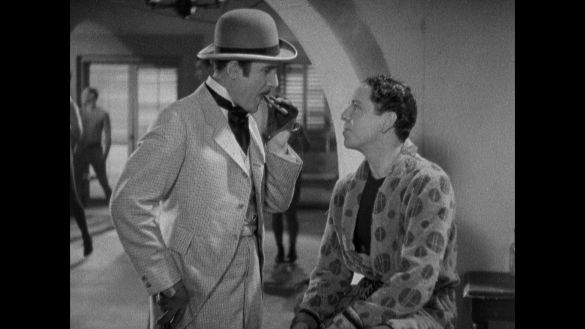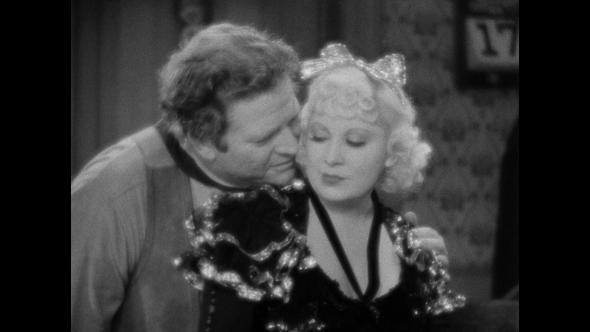 up for the first of two times with a young Cary Grant (hot off his turn opposite Marlene Dietrich in Blonde Venus). Adapted from her scandalous play Diamond Lil, the film changes her name to Lady Lou, a saloon singer in turn of the century New York City. Little does she know that her place of employment is a hotbed of crime and deceit thanks to her boss, Gus (Beery), and miscreants like her ex-boyfriend, Chick Clark (Moore). Meanwhile a fed named Cummings (Grant) has set himself up as the head of a mission next door to keep an eye on the place and crack down when the time is right, but will Lou get caught up in the middle? Complete with musical numbers and double entrendres galore, She Done Him Wrong mostly uses its threadbare plot as a vehicle for West to strut her stuff. She actually has pretty solid charisma with Grant, but he's far from the razor-sharp, suave megastar he'd become in just a few years. This one also turned up from Kino Lorber (with separate commentaries by Kat Ellinger and David Del Valle, plus a Robert Osborne intro and "She Done Him Right' cartoon); it looks the same here with a 4K scan made in 2017, which probably does the best it can with the surviving elements. It isn't the most pristine film in the set but looks fine given its age and the relative condition of most early Paramount properties. Here you get a new commentary by Pamela Hutchinson, who does a deft job of laying out the history behind the source play, the tangling with the Production Code, West's sudden rise to stardom, and the depiction of womanhood she projected that remains striking today. Also included is the audio of a West appearance at UCLA in 1971 speaking with (a very out of breath) Bob Elias, lasting for 25m23s as she answers questions about her career. It's a little tough to follow since there's some obvious physical comedy going on that we can't see, but it's great to hear her in fine spirits talking to the students. She also touches on her supposed discovery of Cary Grant as well as her acrimonious relationship with W.C. Fields, but more on that later. After that you get the Night After Night trailer, galleries for both films (19 and 24 images respectively), the 1933 She Done Him Right cartoon (7m54s) with Pooch the Pup, and another cartoon, 1933's The Merry Old Soul (8m2s), featuring Oswald the Rabbit and a host of Hollywood caricatures including West.