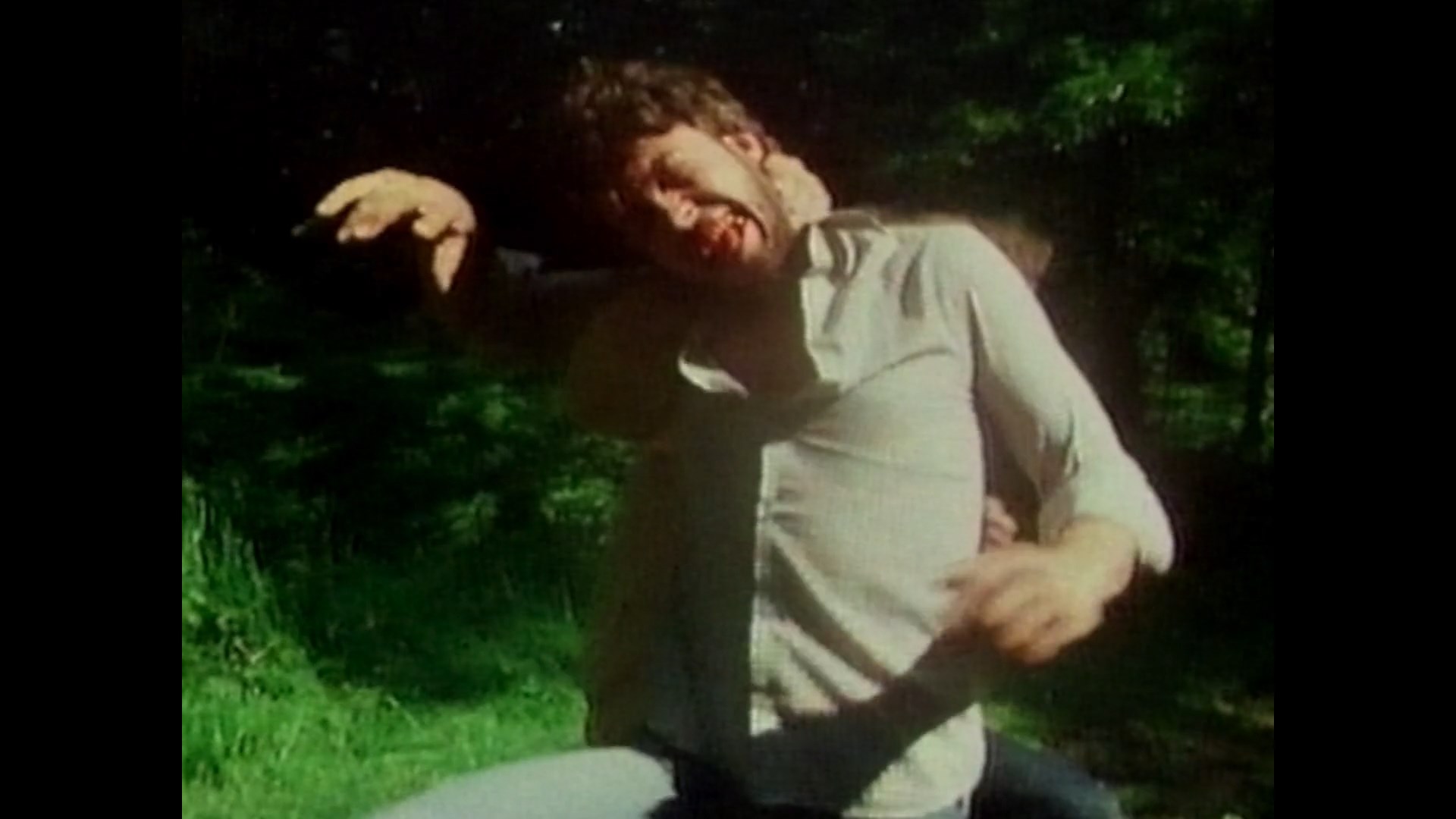 off Murphy's eye for Greek isle scenery again. Then we move to another short feature, 1981's Death in the Family (54m51s), which actually does feel a bit like a more subdued Milligan film and got a U.K. VHS release back in the day from Neon. Oliver (Hall) welcomes several of his relatives to the family villa for a reunion including sister Debbie (Caroline Aylward), with whom he has an incestuous relationship, to meet the new stepmother, Shirley (Aston). It's been five years since the death of Oliver's mom in a fiery car accident, and he's still working through major trauma issues while his dad Max works on building a new marina. Soon hidden agendas rise to the surface as Oliver and Debbie's dark side begins to take over. Though it starts off slow, this one is pure Murphy with its double- and triple-crossing characters, languid Greek island locale, and utterly cuckoo climax that's best experienced unspoiled. The 2K 16mm restoration (with a couple of very fleeting VHS inserts) is framed at 1.33:1 and looks solid while preserving the scrappy nature of the original film.