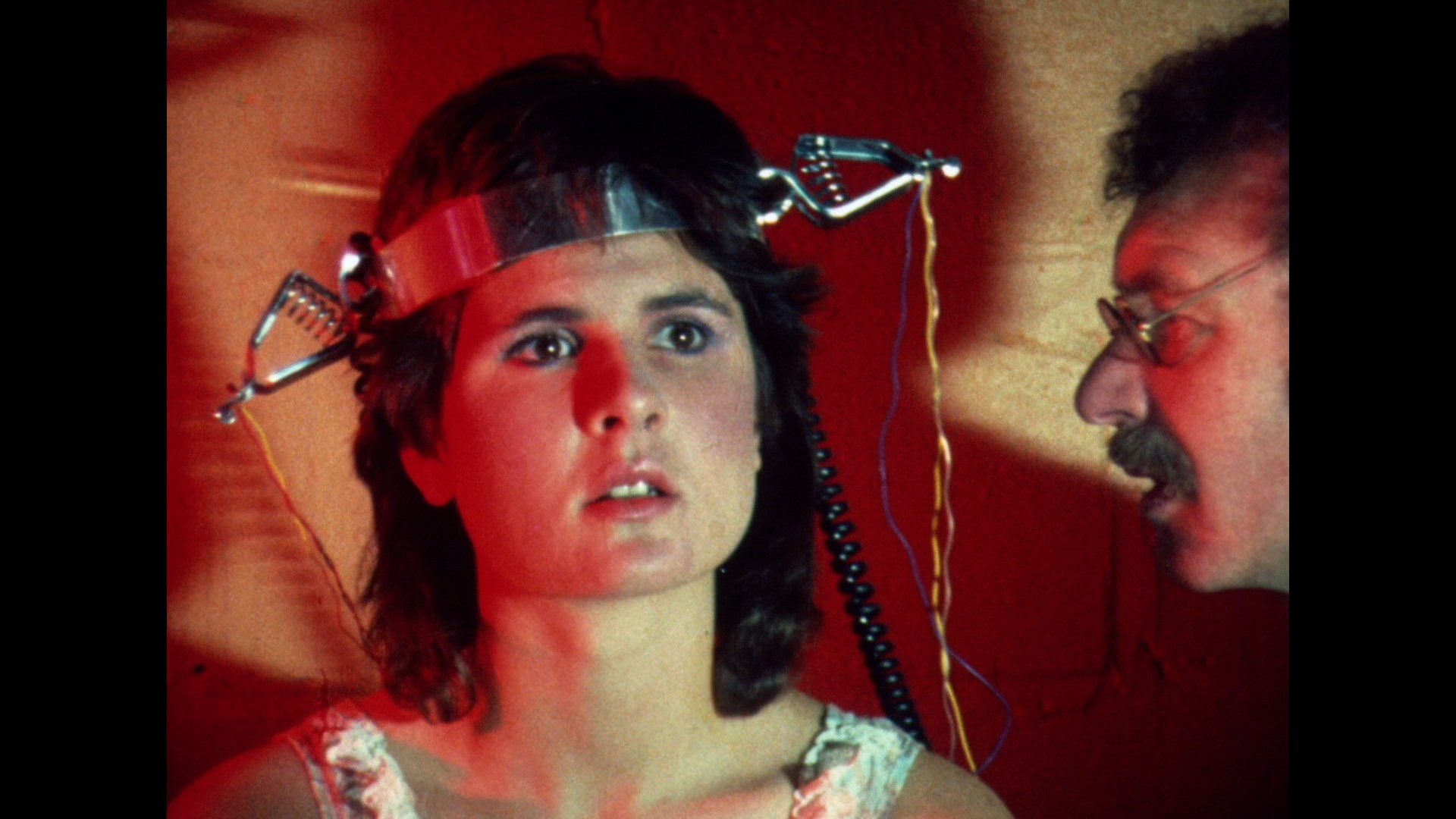 on dishonest low-budget distributors. Brutally cut out of his profit share by scumbag home video distributor William King (Mark Wells) after completing his horror film Bloodstream, director Alistair Bailey (Patrick Olliver) drowns his sorrows at home by watching gore movies until secretary Nikki (Jacqueline Logan) alerts him how much he's just been screwed. On top of that, Nikki gets plenty of additional dirt on her boss and his associates -- which is impetus enough for Alistair to slip on the costume from his latest opus and create a "sequel" killing off King and his cronies on camera for real. If you make the leap this film requires and set logic aside, it's a fascinating and sometimes outrageously gruesome meta-commentary on the poverty row side of horror movies during the ascent of the VHS era, with Murphy clearly speaking from real-life experience after the botched deals on his most recent films. Murphy himself is on record in this set as saying the Super 8 format just didn't cut it after his previous 16mm projects, but you also have to wonder if perhaps he wasn't also concerned about alienating other people in the business down the road. Some VHS-sourced bootlegs of this film have floated around for a while (including at least one unauthorized DVD), but the Indicator marks the first official release of the director's cut sourced from a 2K scan of the original Super 8 elements (featuring Murphy himself dubbing in the role of King) or the earlier bootleg version (80m47s) sourced from VHS with Wells' original voice (as well as Logan, who was also redubbed). Extras on disc three kick off with "Michael J. Murphy Presents" (18m40s), a lighthearted interview and studio tour with the director and Lyndon chatting about the rationale behind the films, the friends made along the way, and some of the more memorable press coverage. Also included are a reel of 16mm test footage (3m12s) circa 1980, a Bloodstream promo intended for an unrealized 2008 DVD release, a 28-image gallery, and script galleries for both films.
