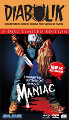 perpetual home video favorite since the VHS days (at least in countries where it could be legally released), Maniac first appeared on DVD and laserdisc from Elite Entertainment in 1999 in a grainy, underwhelming non-anamorphic transfer that at least looked better than the inscrutably muddy VHS versions. Controversially this "director's cut" dropped a lengthy dinner sequence with Spinell and Munro, but this has been reinstated for all subsequent discs.