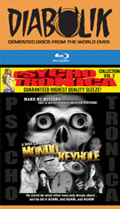 The Blu-ray is taken from the exact same master as the DVD, albeit here presented in anamorphic widescreen so it at least fills up your screen. Otherwise it's business as usual with the same video-generated credits and even a nasty baked-in digital static glitch at the 63m3s mark. The LPCM 2.0 English mono track is the same as well and sounds okay for what it is, with optional English SDH yellow subtitles included. The previous commentary is ported over here, and a "Psychotronica" gallery features A Clockwork Orange, Phase IV, The Mermaids of Tiburon, The Holy Mountain, and Eraserhead; you can figure that one out. A new audio commentary is also included here with film historian Rob Kelly, and it's quite a fun one as he chats about the multiple running times and amounts of nudity, Hill's background, the implications of the "mondo" branding, and the more amusing curiosities to be found within; you also get some delightful moments where he gets completely flummoxed by touches like "records with the sounds of people getting whipped."