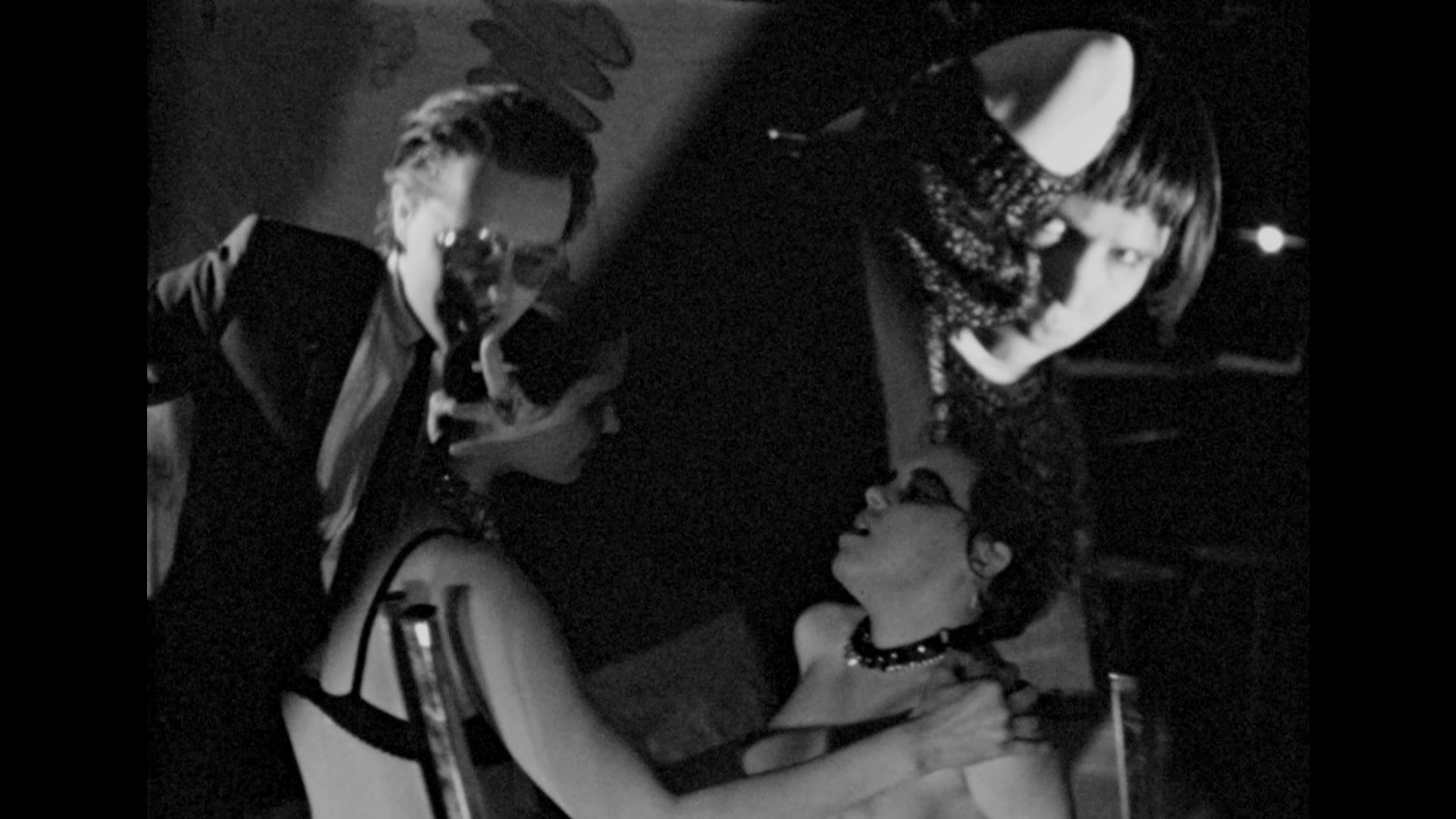 Almost entirely devoid of dialogue and sporting a very effective soundtrack mixing electronics, rock, and musique concrete, this is definitely not your average button-pushing film as it weaves together art house malaise, splashes of gore, and brief bits of hardcore sex into a stew that alternately recalls everyone from Richard Kern to John Waters to Rinse Dream. At less than an hour the film doesn't overstay its welcome if you're in the right mood, and though she isn't called on to do any major emoting, Manera makes for a striking figure with her black pageboy haircut and heavy combat boots. She's also game to do pretty much anything on camera, be it lapping blood out of her own wrists or servicing a theater janitor. The highlight is probably the Bathory sequence late in the film, a cannibalistic dinner party with the attendees in sunglasses devolving into a living room orgy of bloodletting not easily forgotten. (Note: an actress credited in the end titles as "Barbara Bourbon" is not the same as the short-lived '70s porno chic star.)