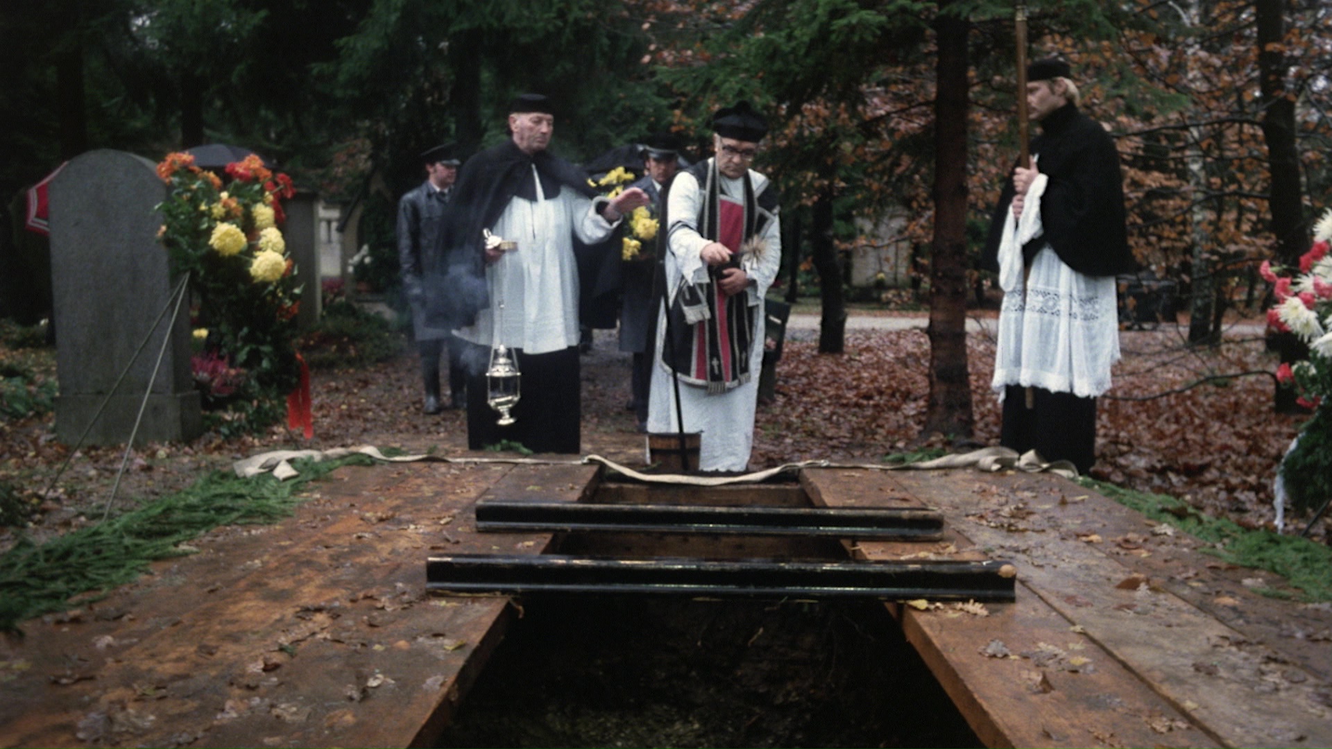 been riotous in the hands of Lucio Fulci seems more disturbing here in concept than in execution. The camera often lingers on the blood dribbling from Pochath's lips, but overall it's more pathetic and weirdly poignant than disgusting. Add to that a deliberately eclectic score