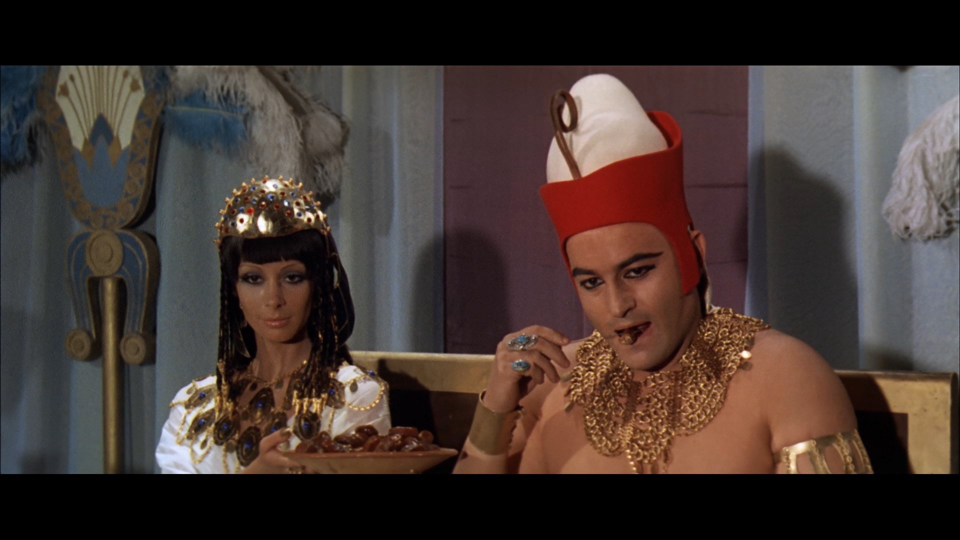 options) for the standard Spanish edition, running at PAL speed of course. The 2019 Blu-ray edition from Scorpion Releasing offers two versions; it was common practice to shoot Spanish horror films in clothed and unclothed versions for the respective Spanish and international markets, and while that may have been the case here during production, some scenes that would seem to be unclothed candidates have never materialized. However, one scene involving the mummy crashing in on a pair of newlyweds around the 41-minute mark is missing from the Spanish version, so you get the option of watching either cut on this disc. The longer version is a composite mostly from the excellent HD scan of the Spanish source with a lower quality one sourced for the extra bit, viewable in either Spanish or English DTS-HD MA mono tracks. The Spanish track is quite a bit more robust than the English one (which his pretty flat and has an on and off fluttering noise), so that default is preferable unless you really love that English dub (which is understandable with all the extra goofy mummy sound effects). The English subtitles are accurately translated from the Spanish track, so it's also fun to see how it compares to the English dub throughout. The slightly shorter English theatrical cut is also offered in pristine quality all the way through, albeit only with the inferior English dub (so you can basically skip it).