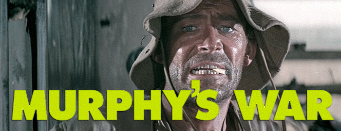 professional relationship behind it, Murphy's War is a wartime adventure that mostly got lost in the shuffle after high-profile films like Patton, Kelly's Heroes, and Tora! Tora! Tora! Here we have the old chestnut about a plucky average joe waging a personal battle against the enemy, here buoyed by a very enthusiastic Peter O'Toole with the most exaggerated Irish accent of his career. The film's less than enthusiastic reception seems perplexing given amount of talent involved including ace cinematographer Douglas Slocombe (showing off his impeccable eye for scope lensing as usual), Oscar-winning screenwriter Stirling Silliphant (In the Heat of the Night), and director Peter Yates, who had recently hit the big time with Bullitt and John and Mary. This was his biggest project with producer Michael Deeley, with whom he'd worked earlier on Robbery and formed a film company called, logically enough, Michael Deeley-Peter Yates Films. Unfortunately the arduous experience split them up, with Deeley (recently off of the British classic The Italian Job) moving on to more challenging tasks like Convoy and The Man Who Fell to Earth before scoring again with The Deer Hunter and Blade Runner. With all these people involved, Murphy's War should be seen as far more than a footnote and more like a Werner Herzog-worthy attempt to depict the madness of war that also feels like an act of insanity itself.