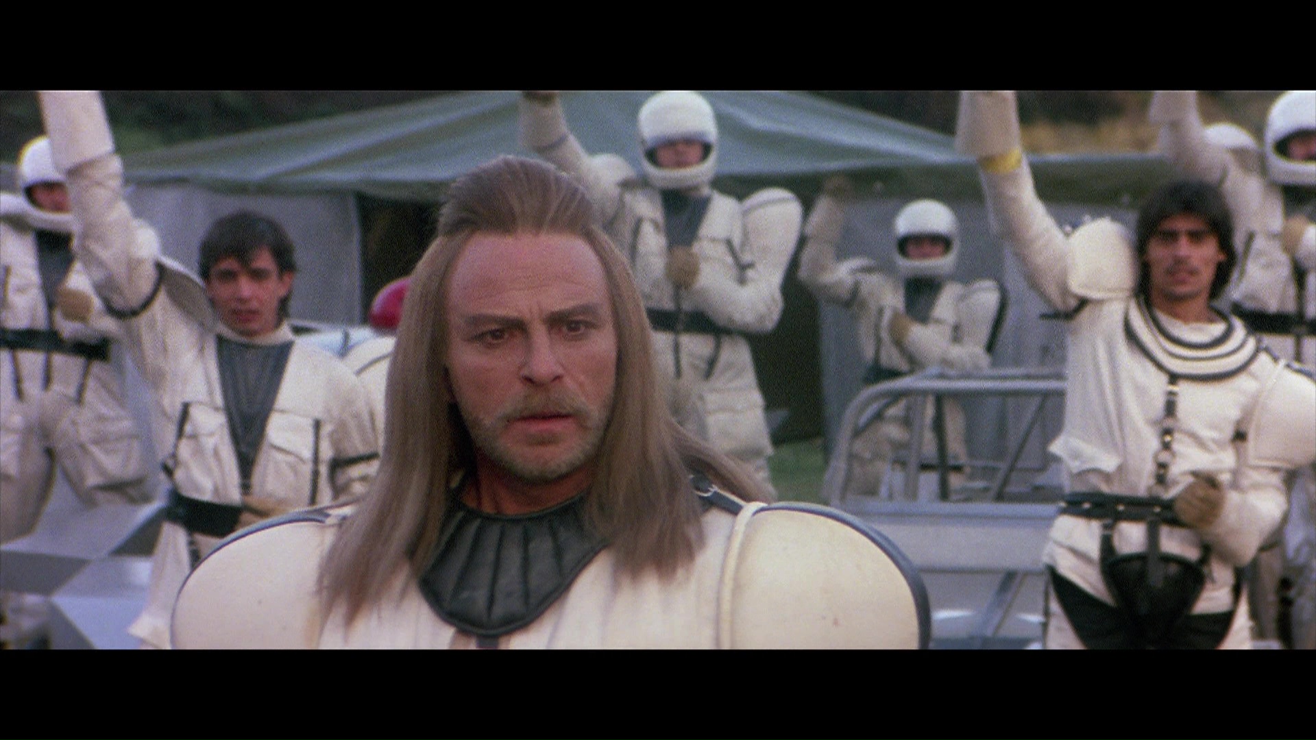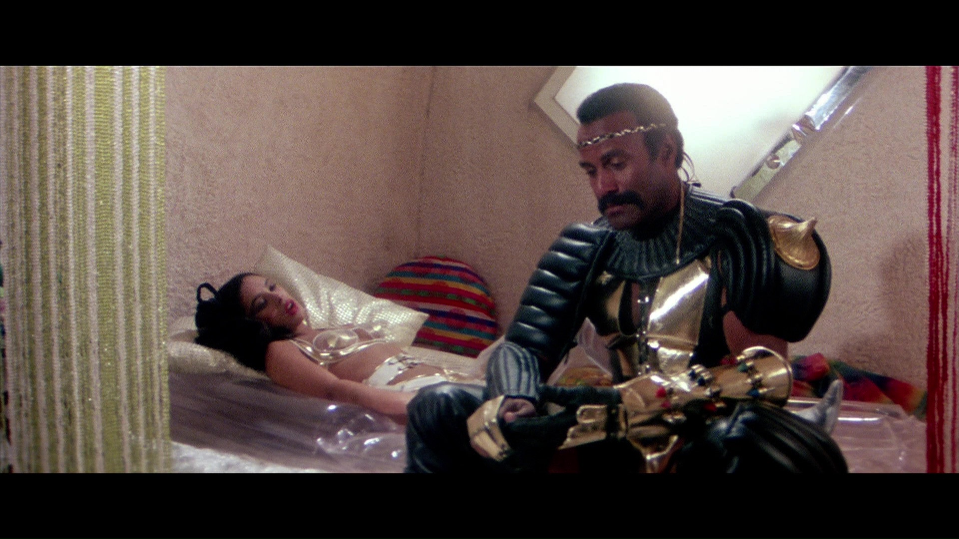 Far removed from the urban setting of the previous two films, this one takes place mostly outdoors with a significantly different, more stylized look including some wild color gels and lots of blue skies. It also sounds very different thanks to a crazed, electronic dance freakout of a score composed by on-and-off Goblin member Claudio Simonetti in between his gigs on Lucio Fulci's Conquest and Dario Argento's Phenomena. Both Williamson and Eastman make off with every scene they're in; the former does his usual charming cad routine perfectly and shows off a cool gold glove, while the latter goes over the top in one of his nuttiest non-Joe D'Amato villainous performances including a punishment by sodomy scene that still makes audiences do a double take.