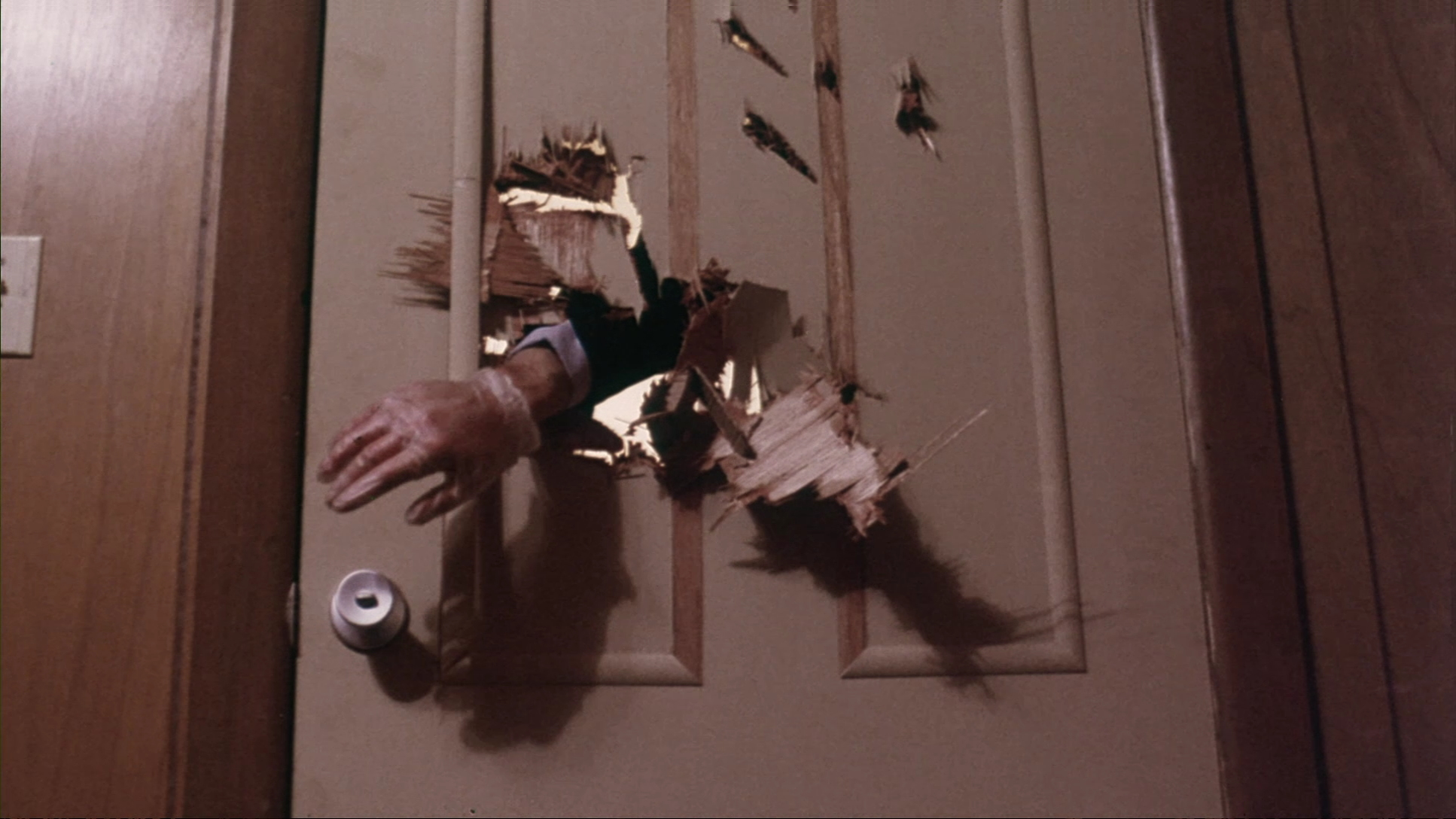 The saga of Nightmare's path to an American DVD release is a long, complicated story winding through years of rumors, distributors, and film element issues, with the title eventually landing in the laps of Code Red and becoming one of their first titles to be announced via trailers included on some of their earlier releases. The wait for an actual release proved to be years in the making, however, and the tribulations could be found looking at the end result as it features no less than three different transfers of the main feature. Disc one contains a "bonus 2008 Hi-Def master... created from the two best 35mm prints," which you can pretty much skip as it's riddled nonstop with damage and debris and ranks as the least satisfying option. More interesting is the "full frame color corrected telecine (2005)," which is (sort of) open(er) matte but cropped a bit on the sides; it looks much cleaner but in terms of detail and color is pretty dreary, though at least this is an approximation (albeit a sharper one) of the grungy, full frame experience many fans first encountered back in the VHS days. The best version by a long shot is the "brand new 2011 telecine" found on the second disc (amusingly pressed to look like a bootlegged DVD-R copy, but don't worry, it is an actual pressed disc). This transfer looks great; apart from a few minor issues like a