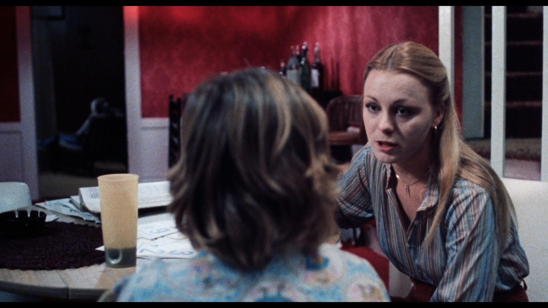 In late 2015, UK label 88 Films threw an interesting twist into the story of this film's video history with its separate Blu-ray and DVD releases as number 12 in its Slasher Classics Collection. The BBFC brouhaha long gone, the film was free to pass uncut -- and in a slightly longer version previously unseen on home video, clocking in at 99m4s (about 39 seconds longer than the longest U.S. cut on the Code Red disc). This doesn't consist of gore but random bits of scene extensions confined to the first third of the film, mainly bits at the heads and tails of scenes presumably lost due to element damage or removed for pacing reasons. The color timing is radically different here, looking brighter and cooler with more detail visible but whites also tended to bloom more; frame grab comparisons can be seen below so you can judge for yourself. The 88 Films transfer has a slight bit of extra info at the bottom of the frame, which means the already eyebrow-raising bit with the vibrator in the peepshow now reveals even more. The LPCM English mono soundtrack has been cleaned up quite a bit but features some pretty extreme leaps in volume, so be prepared to have your remote handy or any nearby pets or neighbors might get very