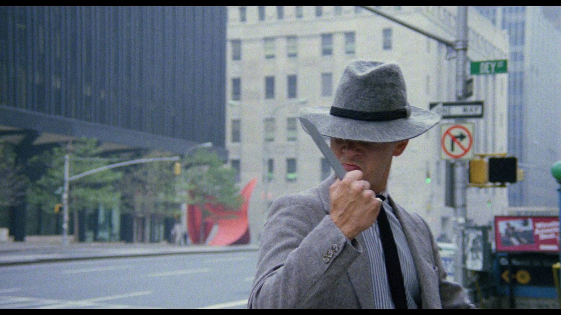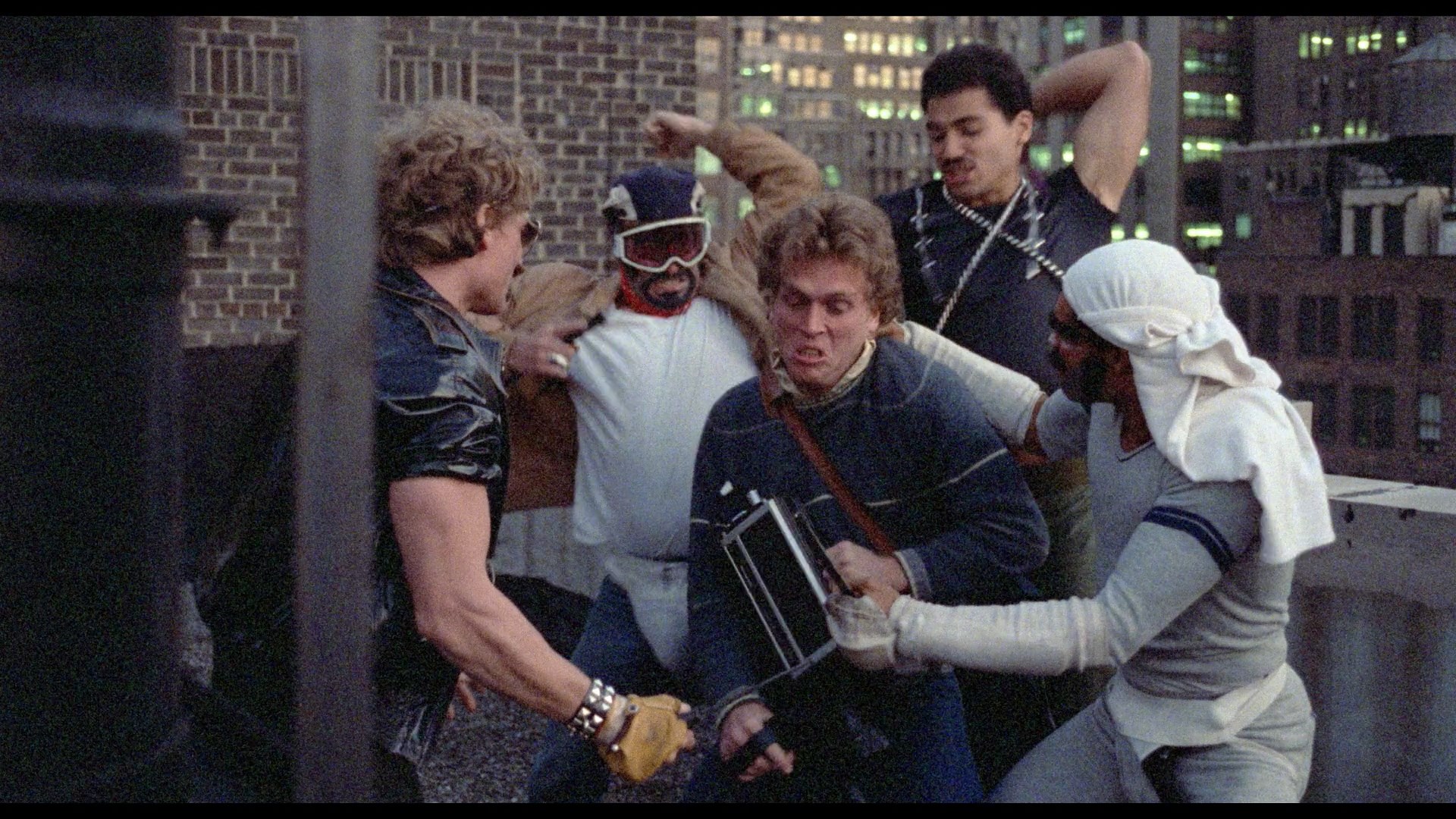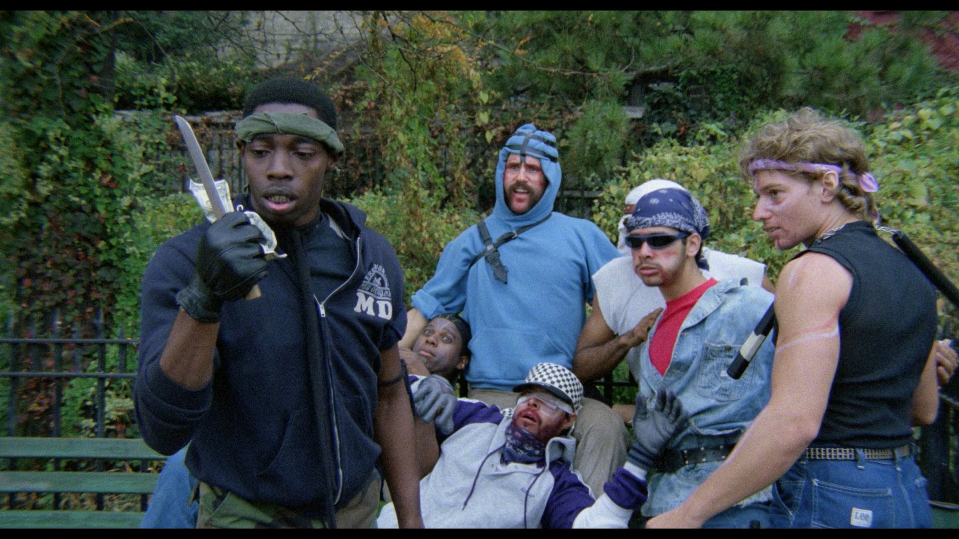 which starts off at the headquarters of 21st Century Distribution (who was initially involved in the project) and then heads through a number of familiar spots then and now around the city. A lengthy reel of silent, full aperture deleted scenes (26m59s) features Spieler commenting on why they didn't make the final cut, complete with a look at some fun showdowns and other bits of madness preserved here for posterity. There's also more of those crazy characters seen in the rap-fueled end credits, too, in case you were wondering. If that isn't enough unseen goodness, there's also an outtake and b-roll montage (10m18s) with some other celluloid odds and ends (More street dragging! More helicopter!), followed by a vintage VHS sizzle reel (9m27s) designed to raise funds for the feature and a 4m23s gallery of great candid production photos. Finally the set comes with a hefty insert booklet, "A Tale of Two Ninjas: The Story of How New York Ninja Came To Be," a more personal take by Spieler about how his hiring at Vinegar Syndrome led to the little action movie miracle we now have in our hands.