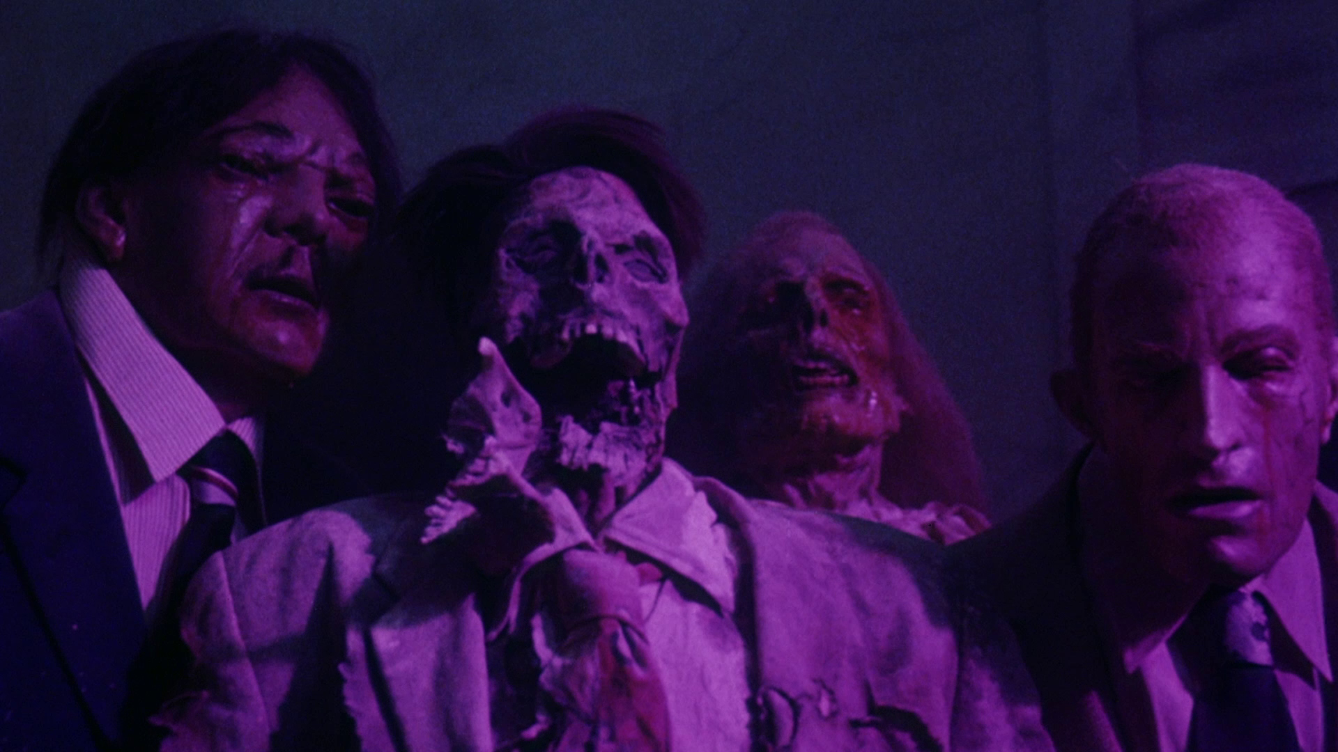 license"), the reshoots on the film including all the Newman footage including the opening scene, the low budget (a bit less than the million they hoped for), the importance of the red Mustang, the connection to John Frankenheimer's Prophecy, and lots more. The volume of the film itself is way too loud during the track, but it's worth sifting through for a more recent, detailed perspective on the production. The theatrical trailer is included at last, but the real good stuff here is the barrage of new interviews starting off with McLoughlin (16m15s), credited here as "Tommy McLoughlin" just to confuse things further, who goes into his shock at the film getting a PG rating, more about the financing, the origin of that toothbrush business, and the film's reception in the horror community. He also reveals the celebrity source for Raymar's face, which is... kind of shocking, and chats a bit about his later projects. Up next is a new interview with Daily (32m3s), which touches on this film a bit but really encompasses her entire career with a focus on her '80s work, ranging from Street Music to Wacko to recording the big single for Summer School. Schroeder returns for a new interview (14m42s) inside the stage where they shot the mausoleum scenes, going into more detail about how it was all constructed on a limited budget with an ability to do some elaborate lighting and camera tilting effects. He also mentions some of