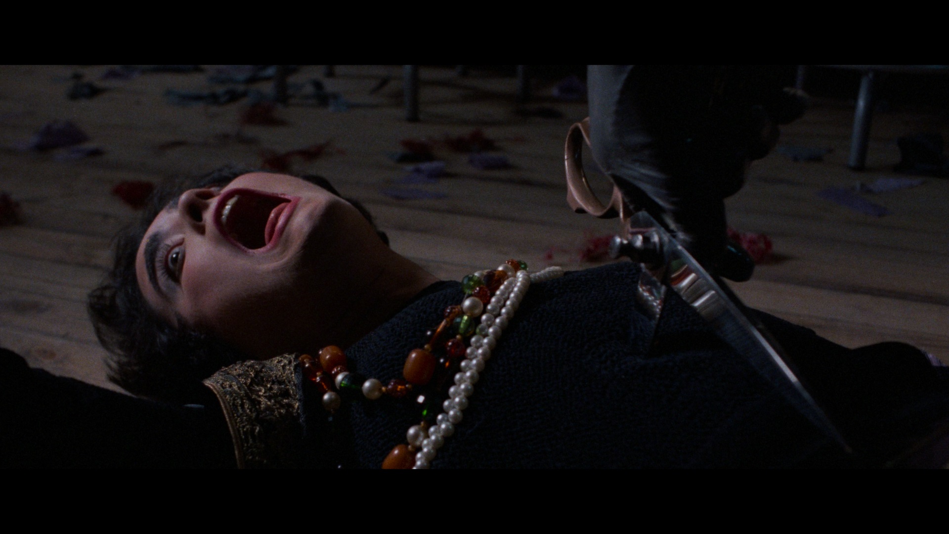 After that the film managed to sit out the entire Blu-ray wave for many years, finally turning up first in HD from Japanese label Kadokawa in the summer of 2015. Unfortunately that release was underwhelming, undeniably a new scan but suffering from an interlaced presentation, shoddy encoding, and, perhaps even worse, a mono-only presentation of the English soundtrack. It took over a year for a passable Blu-ray to finally turn up from Koch Media in Germany courtesy of a three-disc mediabook set containing the usual illustrated German liner notes booklet inside. Oddly enough, this release came just after Argento mounted his own real-life production of Verdi's Macbeth in Italy, complete with controversial lashings of gore and nudity. Thankfully, none of the participants wound up getting hit by cars or tied by maniacs, at least as far as we know. The Koch Blu-ray and first DVD contain the main feature, which can be played in either the full-length version (107 minutes) or the abbreviated export cut (95 minutes), both derived from the Italian negative with opening and closing titles in that language. The uncut version features DTS-HD English (the first Cannes dub with Barberini's British accent), Italian, and German audio options in stereo; the German one sounds very thin and reedy, but the other two are very robust apart from some occasional hissiness in the English dub (which has been inherent to that version on home video). There's also a German-only audio commentary, which won't be of much use for English buyers. The shorter export cut is presented with German or English DTS-HD stereo options, featuring the second, flatter dub for Barberini's character. OperaThe transfer itself is from the same HD master but presented more effectively with better handling of grain, color (not perfect though), and black levels, plus it's progressive. The second DVD contains seven Freak-o-Rama featurettes not on the Blu-ray, all in English or Italian without English-friendly options, featuring interviews with Argento (21 mins., touching on his 2015 production of the Verdi opera), Simonetti (30 mins.), writer Franco Ferrini (36 mins.), and makeup artist Sergio Stivaletti (15 mins.), plus an overview of Macbeth and its cursed history with Enrico Lucherini (13 mins.), a 36-minute critical study by film historian Fabrizio Spurio, and a 25-minute Q&A with Argento at a German screening in 2006. All of these feature optional German subs, but most were made English friendly in later releases. That DVD is rounded out with two different music videos for the film's theme, one shot on the film set with Simonetti and a later one performed by his band Daemonia.