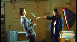 The DVD of Outtake Reel features an anamorphic transfer that's about as good as you could expect for something apparently shot on DVD (also in HD, though the quality of the various "sources" used vary from crystal clear to deliberately degraded). The stereo audio is actually quite good and features some effective channel separation, with Danny (who's behind the camera for most of the first half) mixed in a way that's constantly disorienting-- on purpose. Extras include a fascinating teaser trailer (which, Hitchcock-style, pushes the concept rather than using footage from the film itself), a regular trailer, a reel of deleted scenes (which are interesting but were dropped for obvious reasons), additional behind the scenes outtakes, a "Time to Make the Toes" FX featurette, and interviews with Kaufman and Shepis on the set.