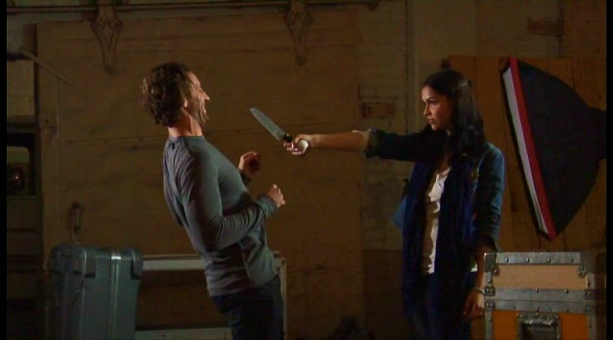 filmmaker Tom Grayson (co-director Feinblatt), a horror director looking for the main starlet in his latest opus-- which is being shot in a sandpaper factory since they can't afford a studio. The choice lands on Ashley (Santana), an aspiring actress who's instantly set upon during non-shooting hours by Danny Wilson (co-director Chaffin), a smart-talking, persistent, and somewhat stupid wannabe documentarian who forces himself onto the production to shoot behind the scenes for a DVD extra. Voicemails and surviving footage cobbled together document the production's rapid spiral into betrayal, torture, and murder.