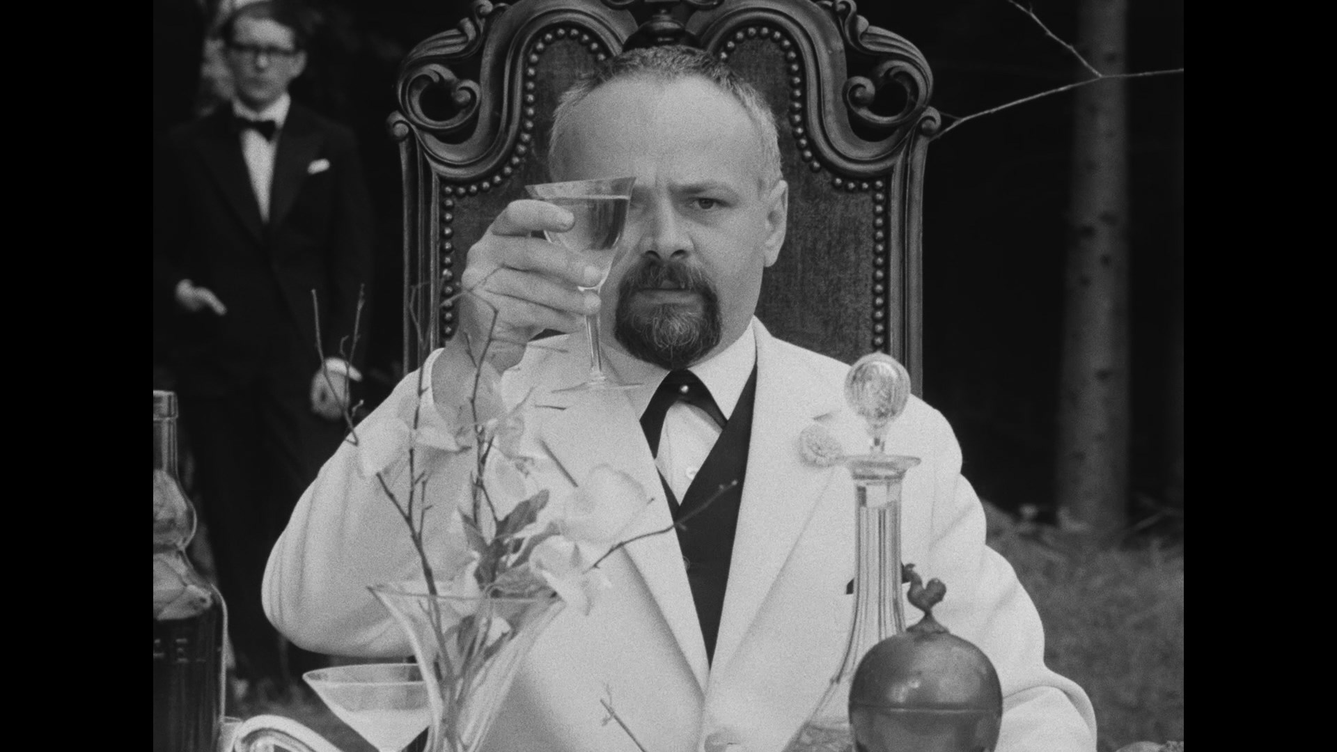 and now held in esteem as one of the most important and controversial films of the Czechoslovak New Wave movement, The Party and the Guests (also shown as A Report on the Party and the Guests) was the second feature for director Jan Němec after his auspicious debut with 1964's Diamonds of the Night. Fresh from an installment in the anthology film Pearls of the Deep, he and his wife, screenwriter and costume designer Ester Krumbachová, wrote this film together adapted from her own story, and the result starring many of their friends was far too much for the state censors to bear with its unsettling allegorical look at totalitarianism and conformity.
