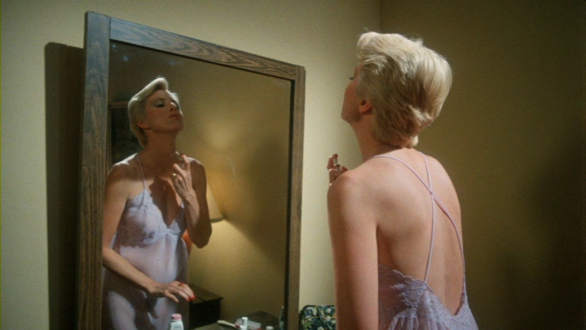 Now we cross the threshold into the 1980s, when attempts at merging mainstream production values and attitudes with unsimulated sex were rapidly fading away (along with any pretense at "socially redeeming content"). Case in point: Purely Physical, another variation on the "sex motel" idea where we visit numerous rooms with various couples taking turns on each other. Chris Warfield, who had transitioned from cranking out 8mm loops to classier offerings like Champagne for Breakfast, brings the loop aesthetic over here thanks to the framing device of a neophyte journalism major named Kathy (Laura Lazare), who takes a night job working the front desk at a motel to better study human nature. She gets an eyeful thanks to a string of businessmen, hookers, and newlyweds, all eager to try out the hotel sheets. Among the