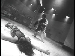 As with its companion film, Rubber's Lover looks excellent on DVD and greatly improves on past illicit video dupes. The black and white photography looks a bit grungy, dirty, and grainy, but that's all intentional. (Despite critics' attempts to read profound meaning into the film's look, Fukui explains on the disc he simply shot it this way because the rubber suit looked silly when filmed in color.) Extras include a Fukui 8mm color short, 1987's "Gerorisuto;" running 10 minutes, it follows a girl in a black dress terrorized and corrupted by an unseen force on a subway and turned into a vomiting mess afterwards, a la Isabelle Adjani in Possession. (Not surprisingly, this scene would later be reworked several times in both of his feature films.) Fukui also contributes another video interview, this one a shorter (20 minute) discussion about the making of Rubber's Lover. Also included are a gallery and the same three trailers found on Unearthed's Pinocchio disc.