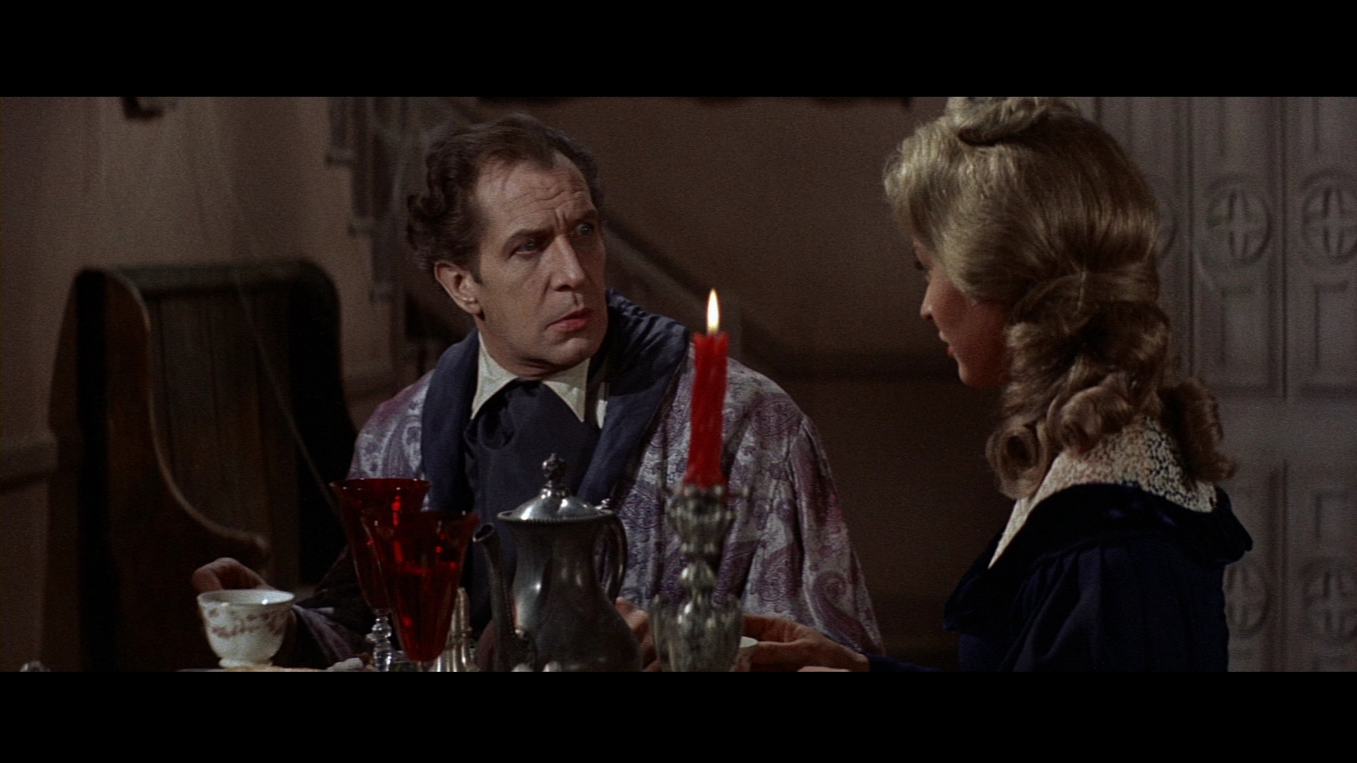 While this is absolutely not the film to spring on someone as an introduction to the series, it's a gorgeous, haunting piece of work buoyed by very strong performances by both Price and Shepherd. The decaying English buildings give the film a markedly different flavor compared to the preceding set-bound entries, and the spacious scope cinematography by Hammer vet Arthur Grant results in some delightfully unexpected imagery, most notably one of Corman's trademark dream sequences with a few new wrinkles of its own.