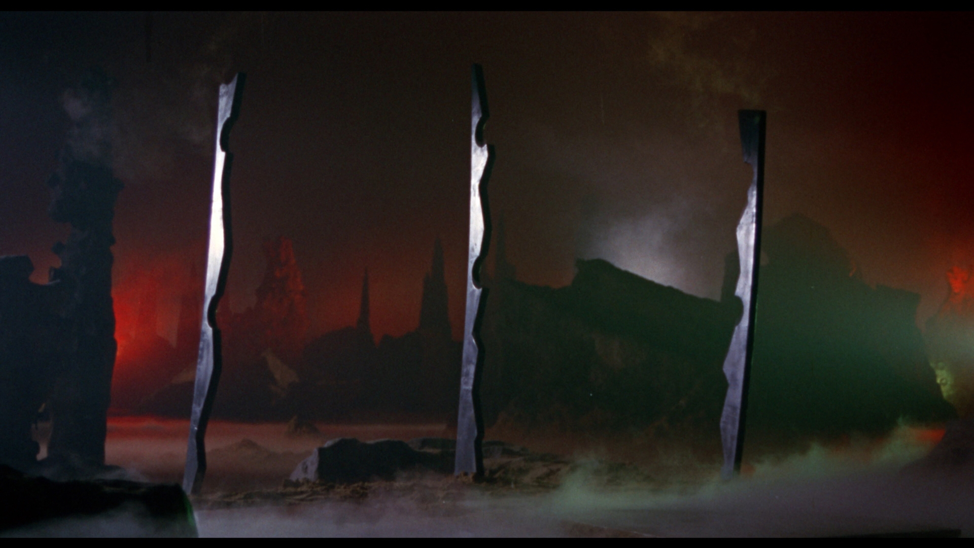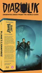 transfer appeared on laserdisc through Orion and Image, doubled up with Curtis Harrington's endearingly bizarre Queen of Blood (which shares two similar alternate titles, Planet of Blood and Planet of Vampires, with those given to Bava's film). After vanishing for a few years, Planet went through the restoration process at MGM, after which it surfaced in a dramatically improved widescreen but non-anamorphic transfer on a 2001 DVD release. The ads claimed the film was shot in "Colorscope," though this seems to be just standard hard matting at 1.85:1 like