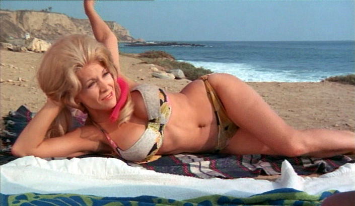 frumpy bikini. Not minding that he's trespassing on her beach, they strike up a rapport that continues when she decides to catch his act at The Lobster House in Santa Monica, CA (yeah, it's still there, but it's just called The Lobster now), where he charms the crowd with another pop ditty. They begin an affair that leads to a boost in Tony's recording career, but things take a downturn when Andrea decides to bump off her wheelchair-bound recording maven husband (Marston) by chucking him in the swimming pool. Then there's Andrea's sexy young stepdaughter, Helayne (Hansen), who also shares Tony's bed (or couch, or car seat). Naturally, this cannot end happily.