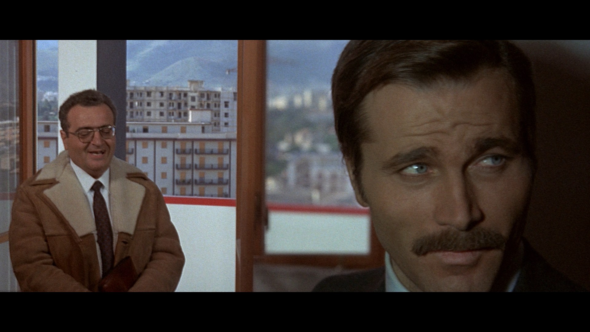 Films Blu-ray released in both the U.S. and U.K. comes from the same excellent 2K presentation as the German disc, featuring 1.0 mono English and Italian audio with optional English SDH or improved English-translated subtitles for their respective tracks. It's a bit of a toss-up which version to watch as the actors were almost entirely performing in English but with more care given to the mixing and dynamic nature of the Italian option. Try 'em both. The extras kick off with a new interview with Nero (29m15s) about his first job for Damiani, their films together, the intended casting of Ben Gazzara in the role that fortuitously went to Balsam instead, the moral lessons he learned from his Carabiniere father, the public response to this film, and more. Then you get an interview with actor Michele Gammino (22m47s) about making his debut with this film after working for Damiani as a dubber, the challenges of shooting in English, the importance of this film on his career, and the collaborative work he enjoyed with Balsam. An interview with editor Antonio Siciliano (26m49s) goes into the tweaks the film underwent in the post-production process, the cadence he established in key scenes like a lengthy confrontation between the two leads, and the conditions of working for companies like RAI and notable directors and producers of the period. Finally an insightful analysis of Ortolani's score is provided by Lovely Jon (31m) who contextualizes this within the maestro's output and the crime and jazz music idioms of the time, as well as notable collaborators like the members of I Marc 4. A 79-image gallery is also included, and the disc comes with a limited edition booklet which was announced as featuring an essay by Mark Shiel but instead has two archival Damiani interviews, "Justice Is Never Neutral" with Gerard Langlois and an untitled one with Guy Braucort, both from 1972, covering American noir, the relationship between the law and organized crime, and more. Radiance Films (Blu-ray)
