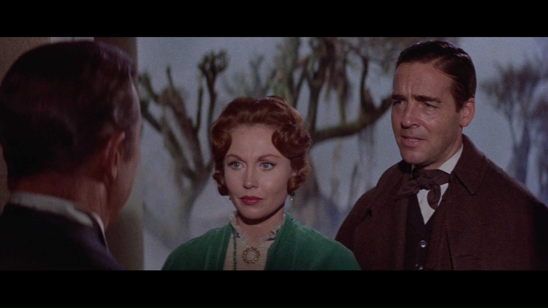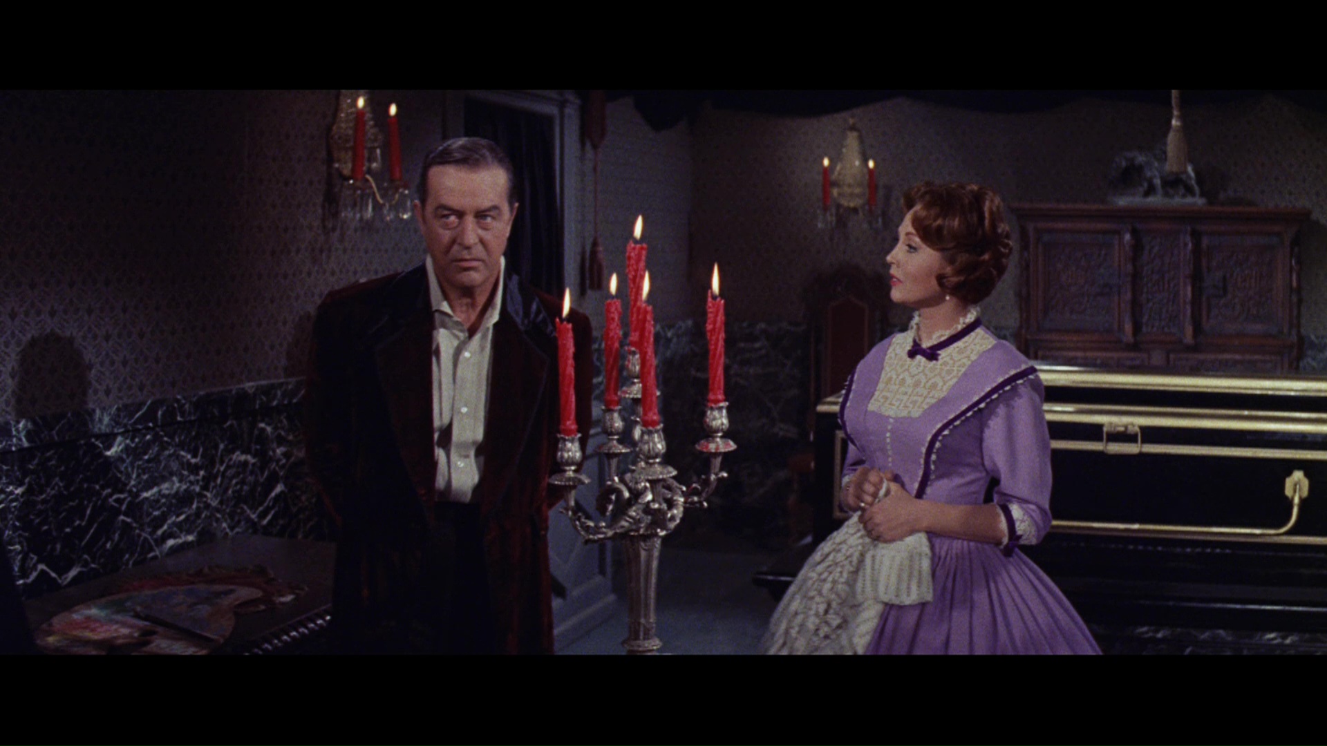 Fortunately the 2015 Blu-ray release from Kino Lorber does improve quite dramatically as it fixes those technical issues and offers the best presentation of the film to date. The 1080p image looks very nice with the rusty, morbid color schemes presented with their dark, dank mood fully intact, and the source material still bears the international full title at the beginning rather than the abbreviated one often seen on home video (which drops "The" from the title card). The DTS-HD MA two-channel mono track sounds excellent as well. Carried over from the DVD are the theatrical trailer and a 9-minute interview with Corman about the circumstances behind the making of the film including the bizarre AIP situation. New to this disc is a fun 9-minute HD video interview with filmmaker Joe Dante, a very articulate expert on the Corman-Poe output, who does a fine job of putting the film in its particular place and pointing out its numerous virtues among its more famous companions. Also Dante-related is the version of the trailer presented at his site Trailers from Hell with Corman himself appearing for a thumbnail discussion of the highlights from the production and its place in his career at the time. Very highly recommended for classic horror buffs who might have overlooked this atmospheric little gem in the past.