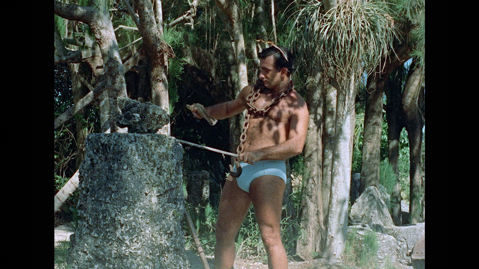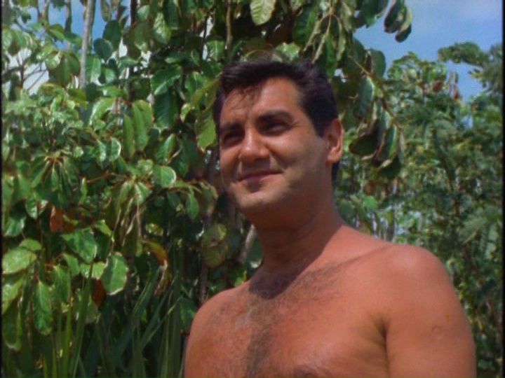 started off her bizarre, truly unique career with bare-assed panache. It comes packed with the all the staples you'd expect (volleyball players with one team wearing pants to obstruct frontal nudity, bare-butt archery, gals lounging in swimming pools on inflatable rafts with their legs oh-so-strategically placed, etc.). Lensed in very bright color, it's an utterly ridiculous robbery caper shoehorned into a nudie-cutie template as robbers Steve Martin (Bauer) (Doris must've just been watching the original Godzilla) and Duke (Conrad) wind up hiding at a Miami naturist resort on their way to Cuba, with a buxom hostage, Dorothy Courtney (Carlos), in tow. Duke hides out in their bungalow while Steve and Dorothy go au naturel to blend in with the locals, and soon their escape plans take a not-too-surprising turn. It's all rather sweet and innocent with the heavy amount of bare bosoms and derrieres blending in with the scenery after a few minutes, and Doris' fractured framing is kept to a minimum here. The cast is mostly a bunch of no-names, but nudist movie regular Dolores Carlos also popped up in favorites like Pagan Island, H.G. Lewis' A Taste of Blood, and the immortal The Beast That Killed Women.