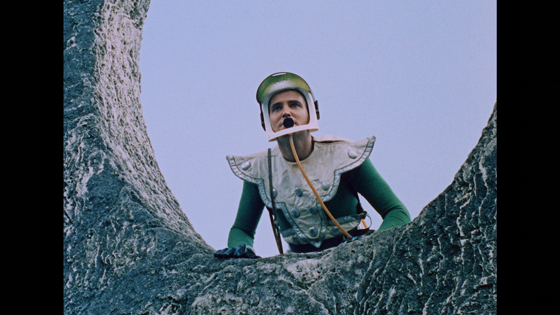 funding, Jeff plows ahead with his plan to take a rocket to the moon with Nichols along for the ride. Aided by office manager Cathy (Marietta), they manage to pull it off after six months and blast off to find that the moon is really a foliage-filled paradise filled with antennae-sporting topless women and beefy dudes. The two men only have a limited supply of oxygen as they observe the activities of this lunar civilization and take some photos, but Jeff is so taken with the exotic and telepathic Moon Queen (Marietta) that he becomes very reluctant to go home.