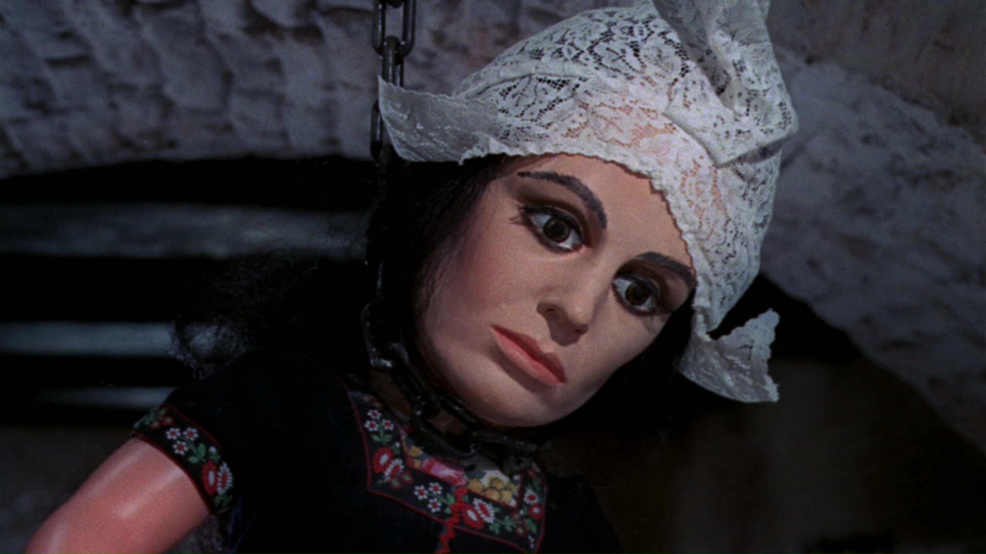Despite appearing briefly on VHS early in the format's history from Prism, Puppet on a Chain has never been the easiest film to see in many countries due to its indie status. A middling full frame Swedish DVD was the only option for a while, but the Scorpion DVD release in 2012