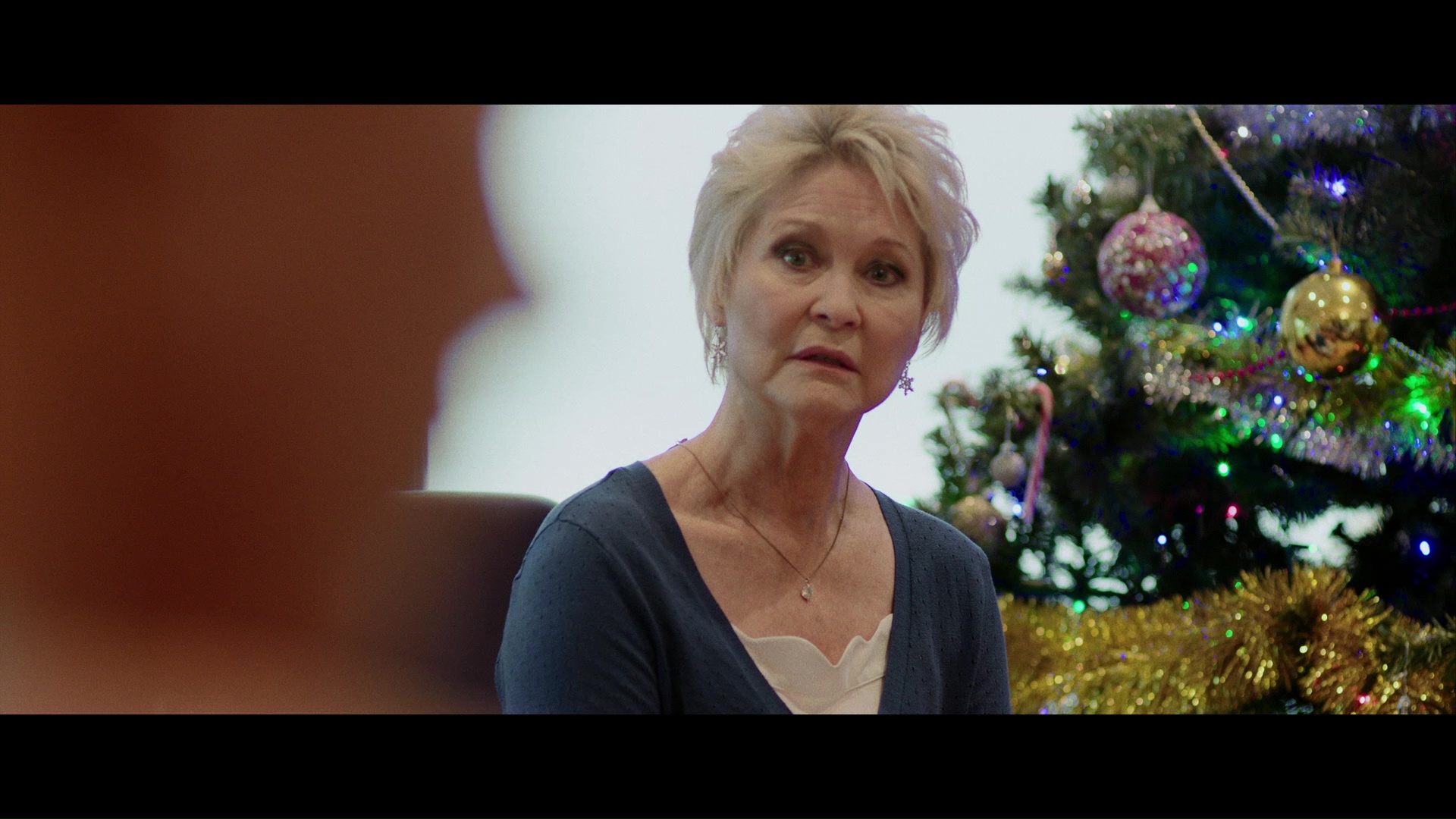things lively with chats about the very low budget (only Wallace got paid among the actors), the influence of films ranging from The Family Stone to Christmas in Connecticut, a real Christmas family encounter that inspired him, the dicey nature of the subject matter and the research involved, and plenty more. Wallace appears for a video interview (19m43s) with Anderson, which features an opening disclaimer about his inability to keep her in focus(!) but nevertheless entertains as she chats about asking for a violent fate involving a four-year-old girl to be excised, working Cujo and 10, and leaping at the chance to do a highly challenging role after a very long time. A visit with O'Dwyer (9m57s) by Anderson and Campbell with a conversation about how they first got together in 2008 and built up a rewarding professional collaboration starting off with an award-winning short. Don't miss his reenactment of a famous horror scene, too. A blooper reel (3m26s), a brief innocuous deleted scene (45s), and a quick video interview with the director (1m40s) over ice cream round out the main content of the disc, which also features bonus trailers for The Anatomy of Monsters, The Devil Lives Here, and Vampyres.