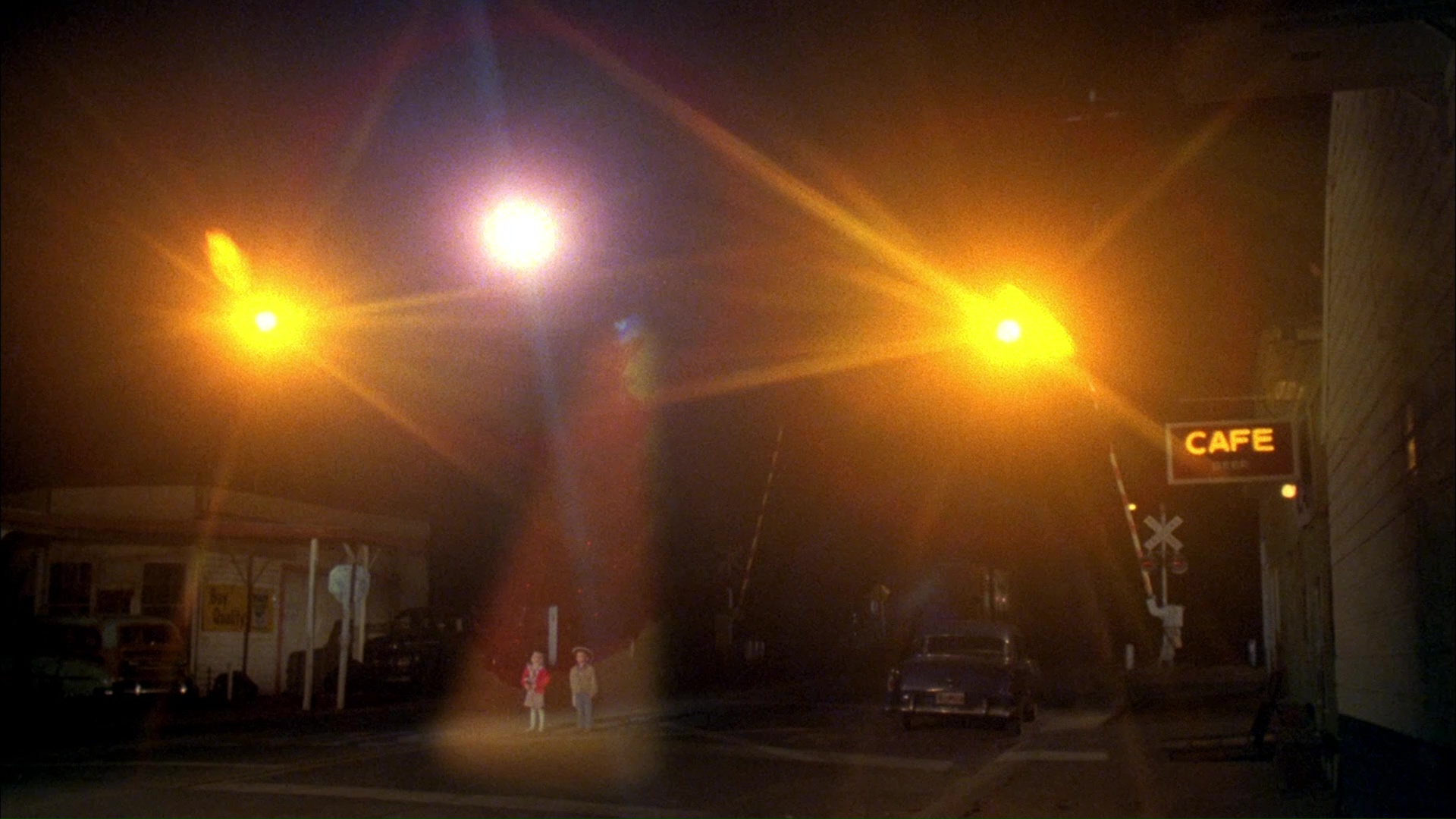 In a quaint southwestern desert town, three people are briefly abducted by alien spacecraft late at night. Two of them, a young boy and girl, seem more curious than terrified, while the third, a weird miner (Schiavelli), is terrified by the ordeal. (At least it's implied they're abducted. There's a lot of disco lighting all over the place anyway.) Flash forward twenty five years, and the girl, Jennifer (Shepherd), is now grown up and become a workaholic at the aeronautic office run by her dad (Burr). Meanwhile the miner still looks the same, and the boy, Wayne (Vincent), is now a cop who spends his time running down joyriding teenagers (including Reardon, who appeared in Silent Scream the same year). You might think he's still in White Line Fever for a minute, but fortunately another Without Warning vet, Martin Landau, is around as a sheriff to remind you something spooky is bound to happen. Sure enough, cattle are being stolen and hacked up in the area, and when Jennifer arrives to check out some weird geological anomalies with her dad