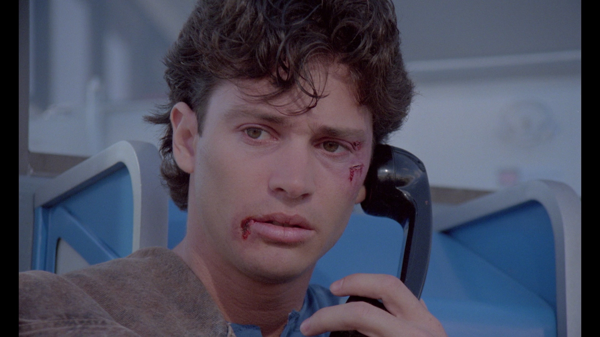 2020, new label Cauldron brought the film back to the U.S. for the first time in decades as one of its inaugural Blu-ray releases along with Abrakadabra complete with slick slip sleeve packaging and a new 2K scan from the original camera negative. The image quality does indeed differ significantly, revealing that some extensive noise reduction was applied to the earlier release; quite a bit of additional detail is visible here with textures on clothing, hair, and interior decor looking far more convincing with less of a waxy appearance. It's also brighter and features some framing variations throughout, mostly shifting down and to the right slightly for most of the running time. (Compositionally it looks workable either way; frame grabs in the body of this review are from the Cauldron with comparisons below.) Color timing also varies, with a less earthy look and a handful of exterior scenes (such as the fourth shot at the bottom) looking cooler and more overcast. In motion it looks great and makes for a significant upgrade, not least of all for finally running at the correct film speed. The LPCM English mono track also sounds great and sports English SDH subtitles. A new audio commentary by Kat Ellinger and Sam Deighan centers almost completely on Martino as they chat about his flexibility with different genres, his tendency to veer away from established formulas, the impact of Claudio Cassinelli's death on Hands of Steel, the depiction of Asian characters at the time, the connections to other directors throughout Martino's career, the director's lack of a consistent visual signature, and the relentless insanity of the entire story. The interview featurette with Martino and Geleng is also included here, but you also get a new location "Then and Now" featurette (2m52s) showing various locations around the city in their 1989 and 2019 states. An episode of The Projection Booth podcast (65m30s) is quite amusing as the gang attempst to grapple with the sheer craziness of the fim and form an appreciation society for what should be a major cult fim in the making. Finally the disc closes out with an image gallery (1m4s) featuring a wealth of international artwork from the film's theatrical and home video releases along with a smattering of promotional stills.