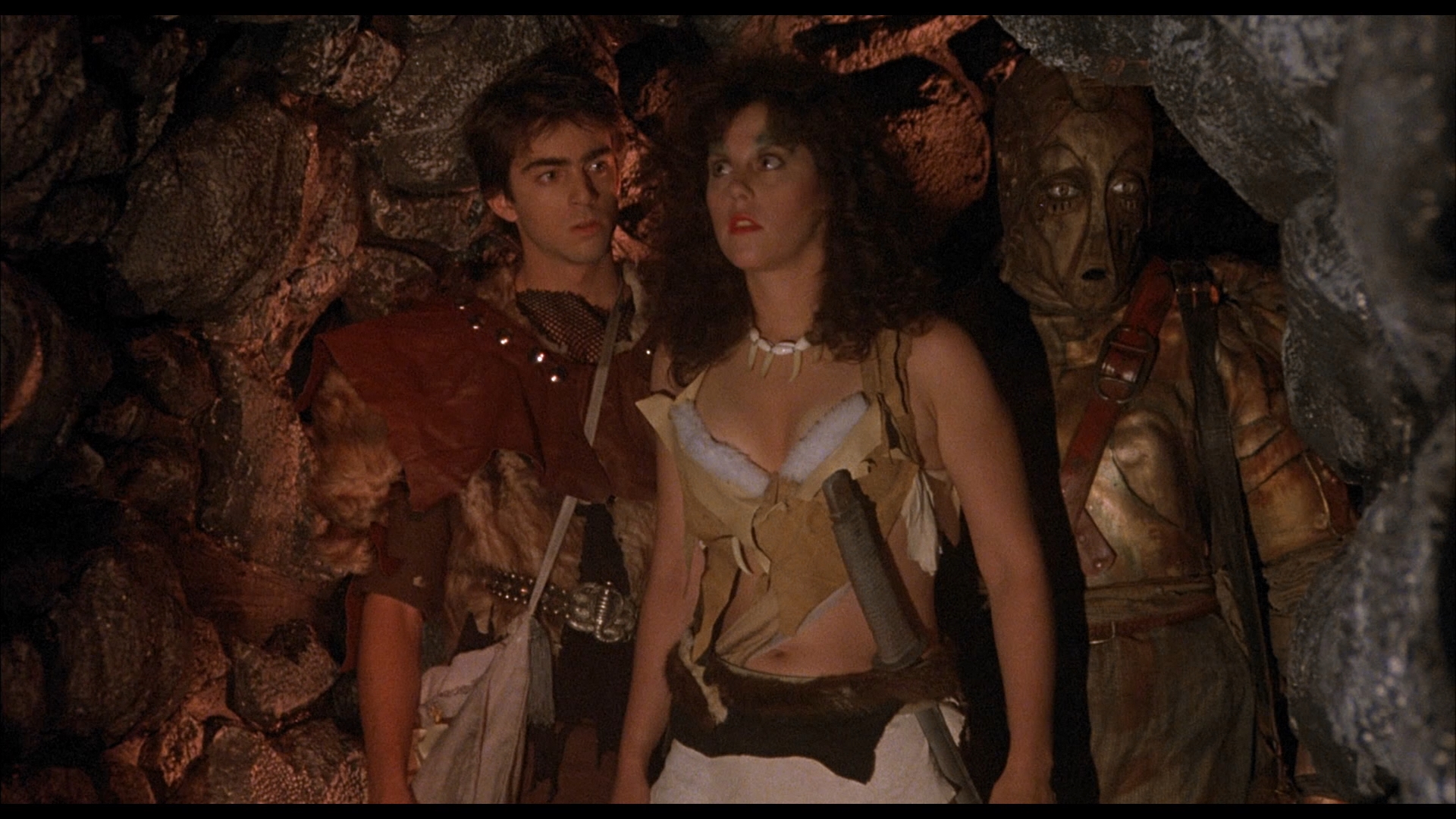slipcover and 9x11 mini-poster with artwork by Nathan Thomas Milliner while supplies last. The transfer itself looks like the same scan used for HD broadcast though without the significant noise reduction applied by that channel, so it's more detailed here and features finer, more visible film grain. Very colorful and finally legible in the many dark scenes, it manages to show the film off on its best behavior and is likely as good as we'll get it for a very long time. The DTS-HD MA English mono audio is also in great shape, though the actual dialogue recording and delivery isn't exactly the kind of thing that will have audiophiles writhing in ecstasy. A new video interview with actress Jennifer Delora (17m42s) covers her collaborations with Kincaid, her "bad ass" role here as Nyla ("Queen of the Amazon Warriors"), the evolution of her wardrobe, and thoughts on her fellow actors whom she got to hang out with a lot on the threadbare production. Bonus trailers are also included for Panga, Iron Warrior, Shredder, Gas Pump Girls, and The Happy Hooker Goes Hollywood.