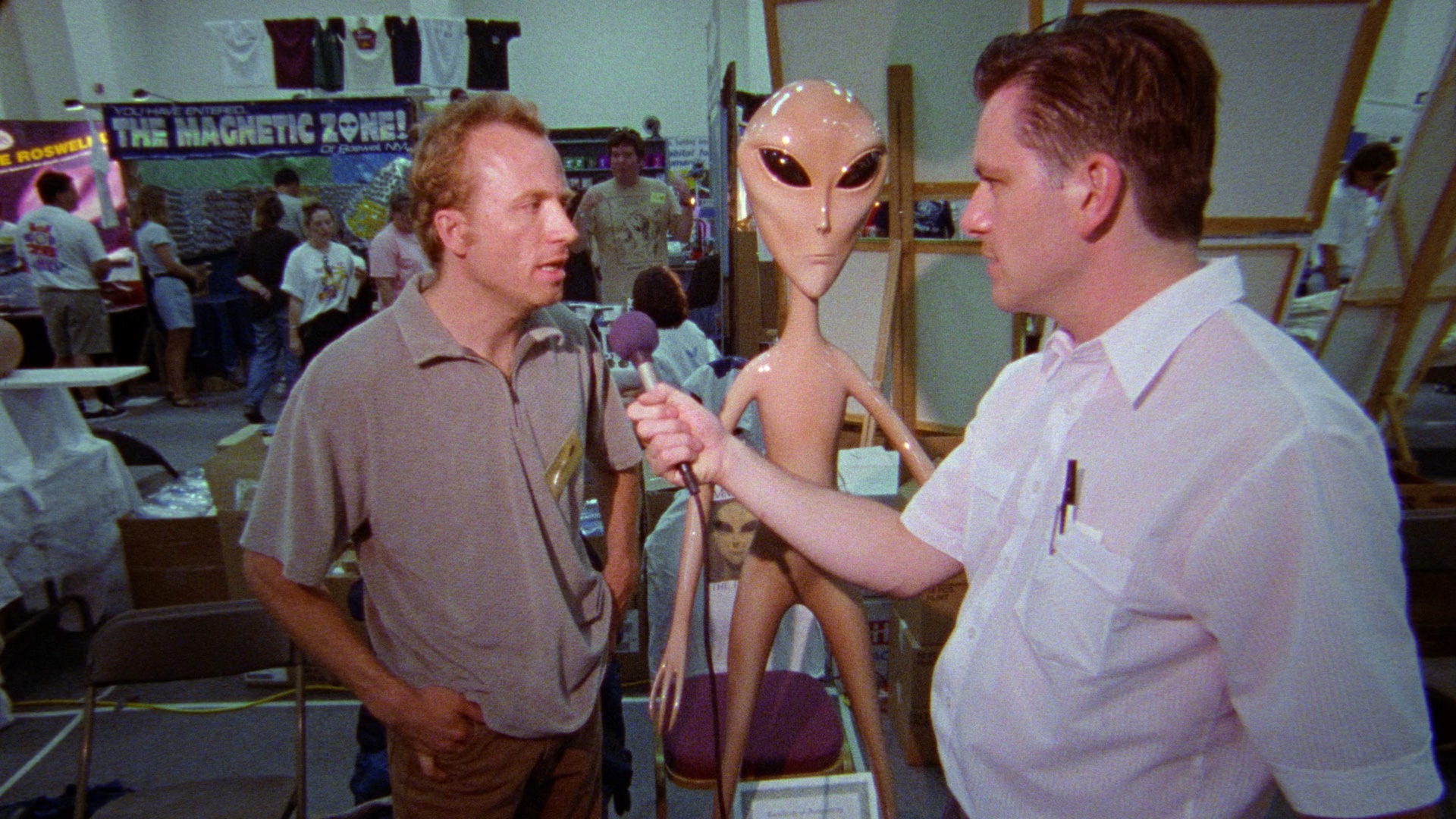 in the game to make a fast buck, the real pleasure in Roswell lies in the incidentals. Rich's camper rental arrangement with an elderly resident and his attempts to adjust to the climate are among the best anecdotes, while the filmmakers seek out the quirky little details like UFO pancakes and pizza, Rich's multicolored UFO haircut, and gun-toting locals who critique our guide's preparation for an alien invasion. Along the way we also get dozens of interviews, including a surprise appearance by Communion's Whitley Streiber, who offers an astonishing amount of non-information which Rich nevertheless regards as one of the highlights of his life. However, the comedic climax is obviously reached during a production of Roswell: The Musical, a surreal spectacle that must be witnessed to be believed. Synapse first released this as a standalone DVD back in 2000 featuring a nice and crisp transfer for the time from the original 16mm elements, plus a treasure trove of goodies bound to amuse fans of the