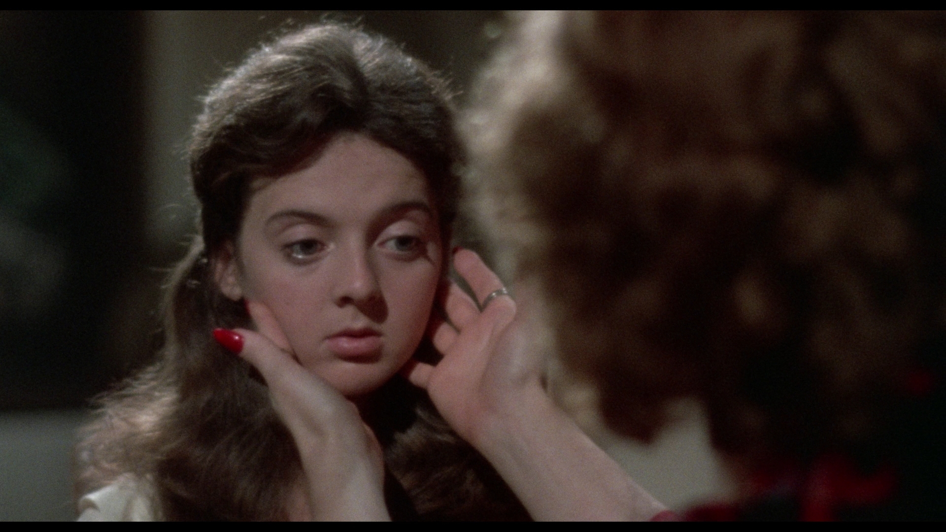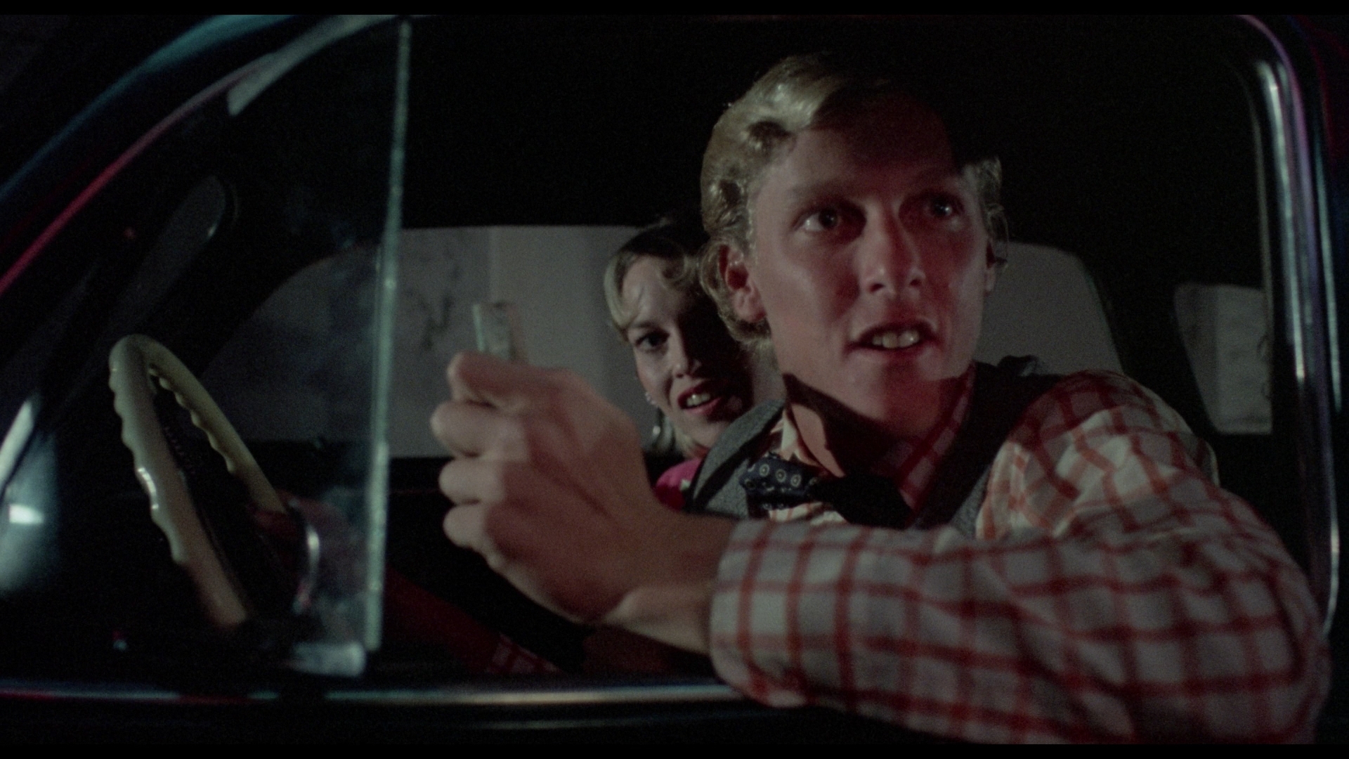 quality bumping up quite visibly including more natural fleshtones, better detail, and far more legibility in the night scenes. The aesthetic here is very filtered and deliberately soft for the majority of the running time, but the UHD (with HDR10-compatible Dolby Vision) in particular looks much better than it ever has before outside of a first-run screening. The DTS-HD MA 2.0 English mono track sounds great given the very straightforward nature of the original mix, and optional English SDH subtitles are included. Both of the prior commentaries are included, but you also get a new one with David Del Valle and David DeCoteau; as anyone who's heard their previous track for Harrington's The Killing Kind can attest, they're a blast talking about the director and that's certainly the case here. Brisk and very entertaining, it's a great snapshot of Harrington, their own memories of and experiences with this film, and plenty of showbiz tangents ranging from the silly to the sad. Among the video extras, all three of the Del Valle interviews are carried over here plus the trailer; you also get a radio spot and the entire TV version in glorious VHS quality so you can remember how bad we used to have it. In the new "Keeping It Natural" (11m36s), Davis looks back at his work with Harrington starting on 1974's Killer Bees for TV (which employed Joel Schumacher early on), his typecasting as a cowboy, and his memories of this film including its box office success, his favorite moments, and the involvement of Krantz. Finally in the new "A Cinematic Summoning" (23m20s), Kim Newman traces Harrington's genre evolution for his early days working with the likes of Kenneth Anger in the underground scene through the development of his camp Hollywood sensibility that manifests throughout much of his work including this oddly effective portrait of doomed love against a moviegoing backdrop.