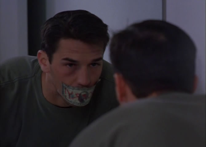 complete with a long plug for his website and various anecdotes about the shoot from the hiring process (thanks to the involvement of his mother-in-law) through memories of his various costars. He's also wearing a pretty great t-shirt and reveals he didn't have a complete script when he started shooting (at the same time as a gig on The West Wing), which is easy to believe.