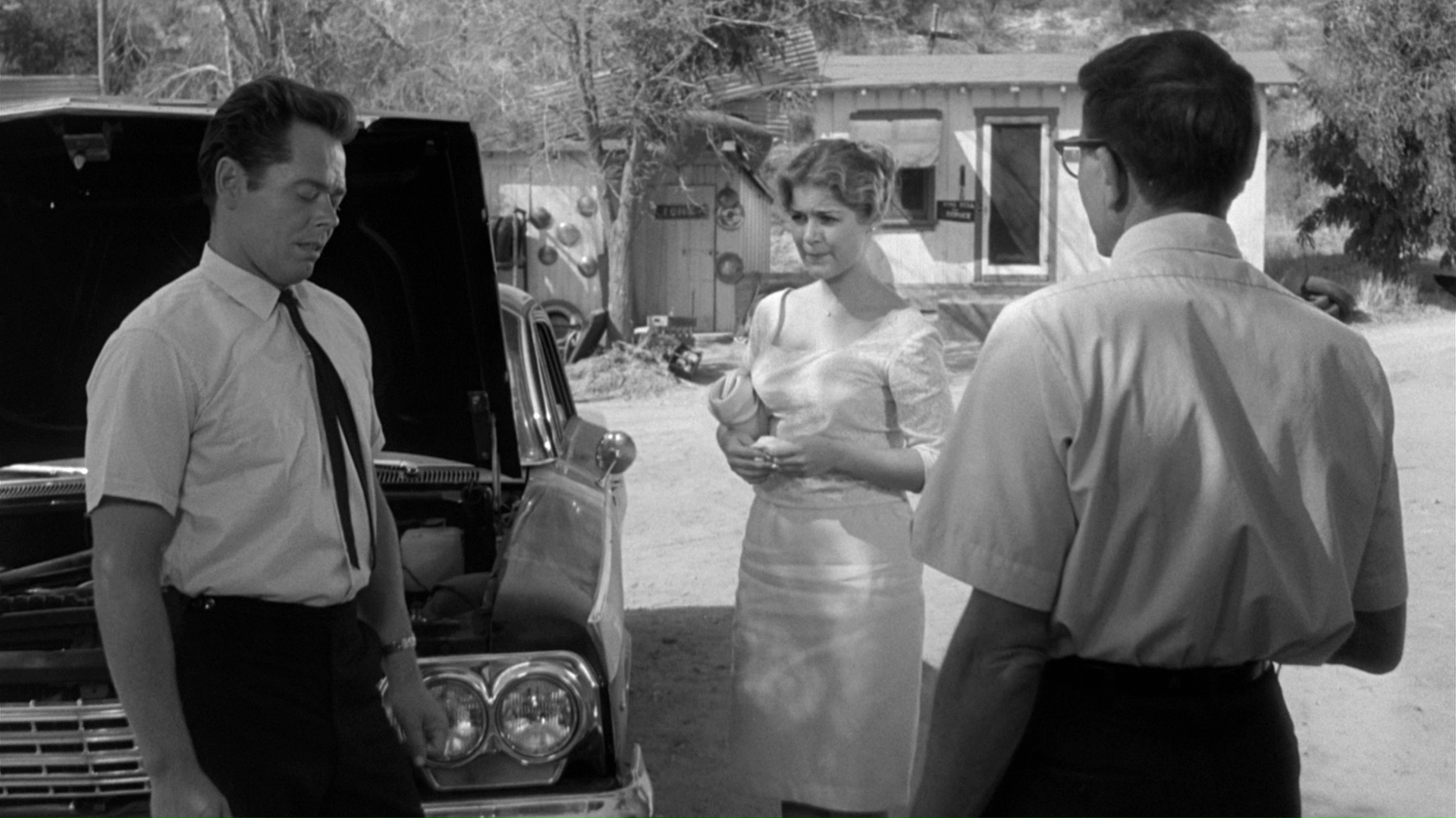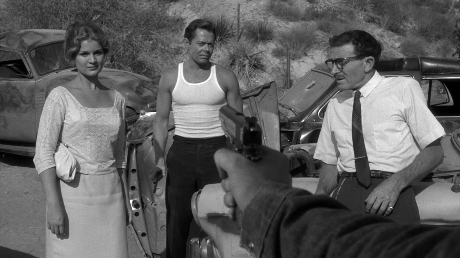 In real time, the audience bears witness to the harrowing ordeal of a trio of high school teachers -- Doris (Hovey), Ed (Alden), and Carl (Russell) -- whose trek across the California desert to a Dodgers game gets waylaid by car trouble. At a gas station they cross paths with maniacal, amoral criminals Charlie (Hall Jr.) and Judy (Manning), who plan on swiping the car once it's repaired and continuing their flight from the law. Soon the afternoon turns into a day from hell as Charlie keeps the innocents at gunpoint and inflicts a number of psychological and physical horrors upon them, ultimately leading to murder and a desperate fight for survival.
