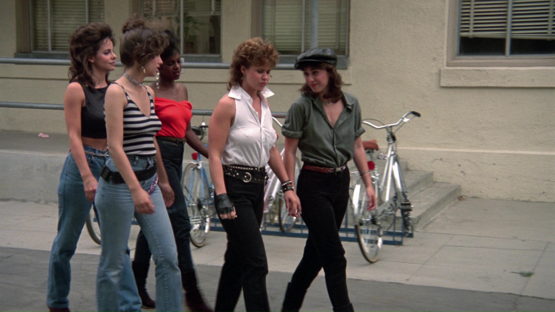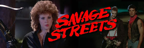 criminal scum on the streets of New York in Death Wish, the urban vigilante film had reached the apex of its insanity thanks to '80s pop culture. Thugs with big hair, gaudy earrings, and horrifying fashion sense were apparently prowling around every corner and lurking in gangs, ready to leap on any innocent schoolgirl or senior citizen unlucky enough to wander in their path. Of course the most absurd (and beloved) variation on this idea was Death Wish III, but a year before that, Linda Blair to offer her own sorta-feminist turn thanks a black cat suit and a crossbow in her own high school variation, Savage Streets.
