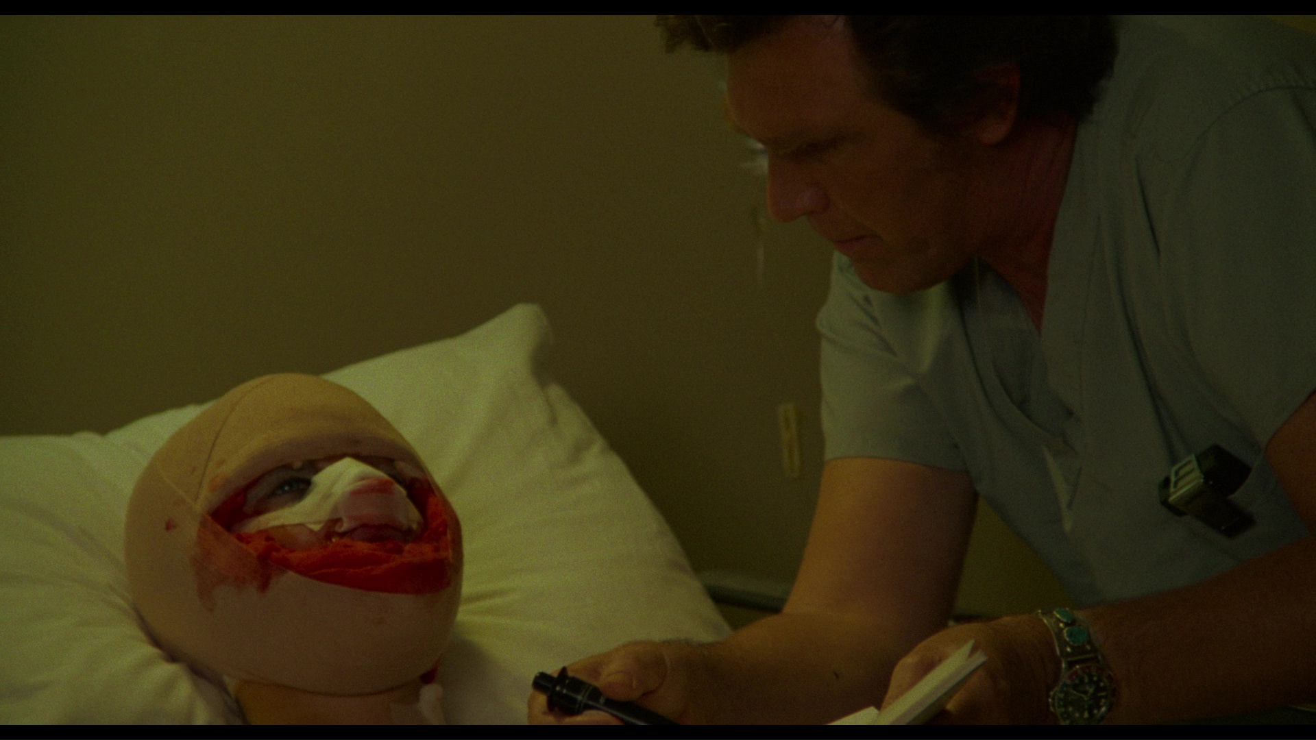 Brian De Palma's Obsession with their shared obsessive fathers, doppelgangers, and incestuous implications; however, this one is more of an exercise in twisted plot mechanics than cinematic style as it follows its main characters to an inevitably dark resolution. Chapman does a fine job in a tricky role, or rather roles, with the second half in particular putting her through some interesting paces. Some of the accents are a bit extreme for suburban Georgia, but that was pretty much par for the course then and not as ludicrous as some of the drive-in car chase movies that were frequently sharing screen space at the time. In 2018, Arrow Video brought Scalpel back into circulation with a deluxe Blu-ray edition in both the U.S. and U.K. with identical contents. In an unexpected move, the film is presented with two viewing options, both from the same restored HD transfer: one supervised by cinematographer Edward Lachman, and the second featuring a "normal" color timing presentation overseen by Arrow before Lachman became involved. The Lachman transfer has a very heavy gold tint, reportedly in keeping with his Southern Gothic concept for the film and very similar to the Warner Bros. DVD of John Huston's Reflections in a Golden Eye versus its other video iterations.