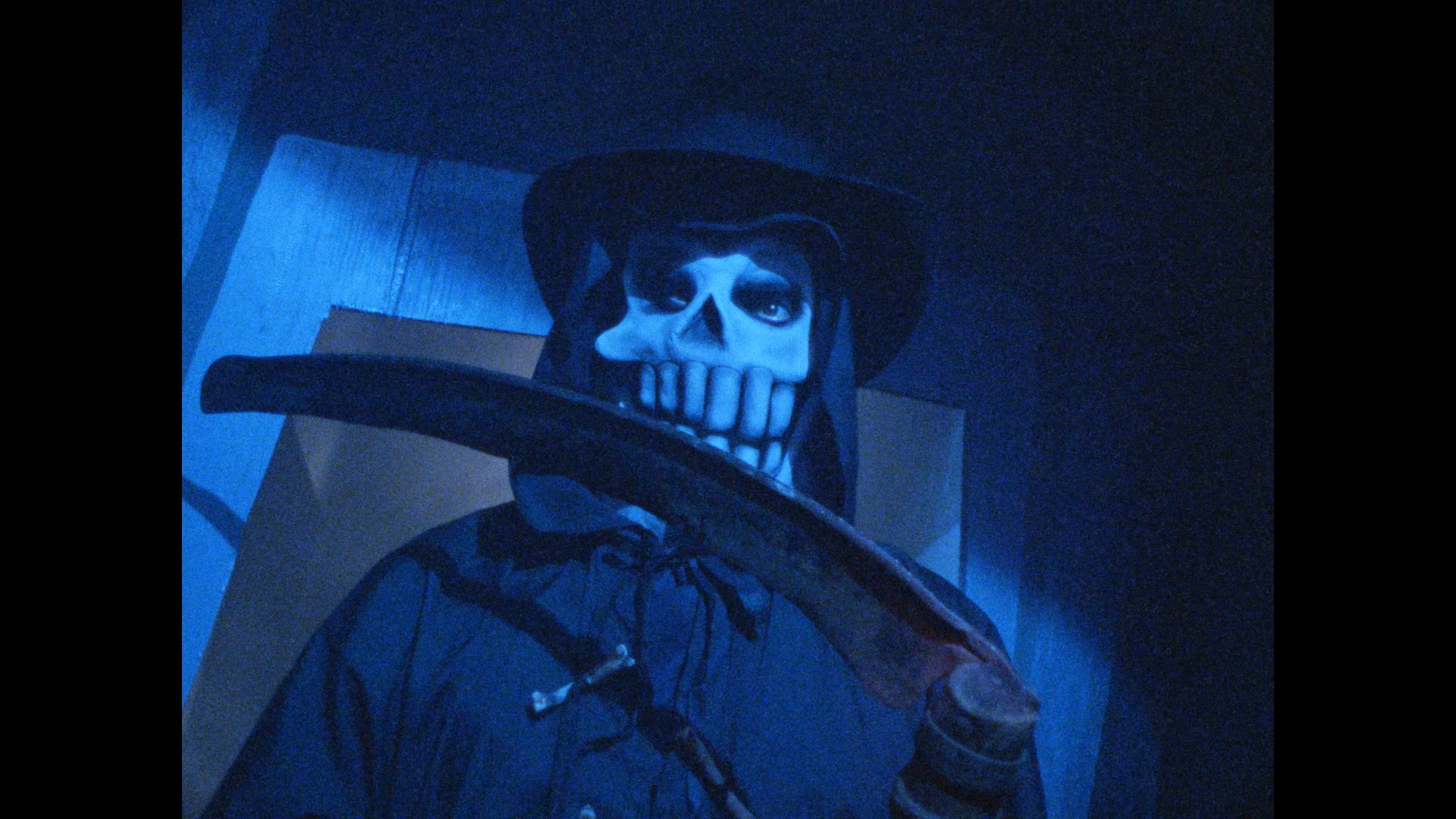 talent mostly from the Austin, Texas area and was designed to evoke a strong seasonal feeling at a time when the horror genre seemed to have been driven into the ground. They also touch on some of the more unexpected elements like a cameo by Butch "Eddie Munster" Patrick and a musical contribution by the Butthole Surfers, the burgeoning film scene in the area thanks to Linklater and Robert Rodriguez, the intentional irrational and dreamlike elements in the production design (the vanishing skeleton is pretty cool), and the reason behind the lack of a distribution deal. Also included are two Erickson short films: "Little Hero" (6m57s), a scratchy little silent goof about a kid in 1933 sneaking into a movie theater, and the fascinating "Mr. Pumpkin" (11m27s), an endearing slice of Halloweeniana that plays like a lost Tales from the Darkside episode and would probably be a lost mini-classic if it didn't drop the ball at the very end. Also included are a (very brief) teaser that couldn't have helped sell the film and a small gallery of behind-the-scenes photos. Reviewed on October 5, 2019