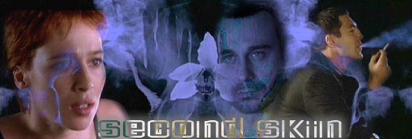 The Manga DVD of Second Skin looks pretty good overall, with a colorful 16x9 transfer. The compression job slips up a few times, notably during a smoky nightclub sequence early on that turns into a series of dancing cubist blocks in the background. At least the disc's quality accurately captures the strong visuals of the film, particularly the stunning opening credits sequence, a Maurice Binder style series of azure X-rays which blossom into various tableaux like motorcycles and flowers (watch the film to find out why). The 5.1 sound mix mostly emphasizes the beautiful score by Roque Baños (in definite John Barry mode), an up and comer who also worked on several Alex de la Iglesia films. The disc includes optional English or Spanish subtitles, a couple of minor deleted scenes containing unsubtitled dialogue, a teaser and theatrical trailer (neither terribly good), and a short behind the scenes featurette.
