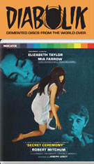 combative role in Mike Nichol's Who's Afraid of Virginia Woolf?, Elizabeth Taylor seemed to take the career turn as encouragement to make an increasingly baroque string of wild psychodramas that would stymie critics and lead to her waning status as a box office name. Among these often troubling but fascinating chamber nightmares were Reflections in a Golden Eye, X, Y and Zee, Ash Wednesday, and the outrageous Tennessee Williams adaptation, Boom!, handled by expatriate American director Joseph Losey, which opened in the Spring of 1969. Taylor and Losey decided to team up again for another stylized drama released just a few months later, Secret Ceremony, which ended up getting a lot of promotional mileage as Mia Farrow's immediate follow-up to one of the year's most indelible classics, Rosemary's Baby. A perverse potboiler dealing with psychological trauma, unhealthy role playing, and implications of incest, lesbianism and molestation, it's a difficult but rewarding film from Losey's defiant anti-commercial period that soon resulted in the even more abstract Figures in a Landscape.