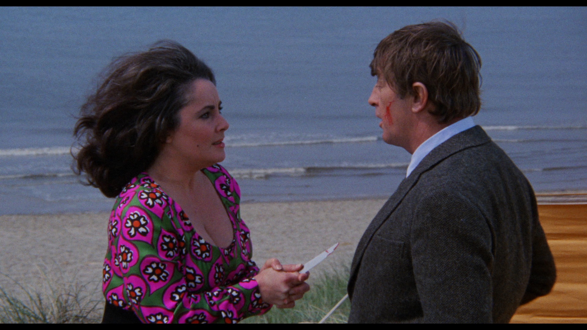 Given a significant theatrical push by Universal, Secret Ceremony wasn't the major hit expected from the cast but became an afternoon TV mainstay for years, on rare occurrences in a doctored version prepared for broadcast (but more on that below). The expansive scope lensing of Boom! gives way here to a much more claustrophobic, classical visual style that suits the equally death-haunted material, with Taylor and Farrow delivering fragile, nicely calibrated performances that hint at far more than they actually show. On the other hand, Mitchum gets to barnstorm like crazy with some of the nuttiest dialogue of his career, delivering a flamboyant and loathsome character whose every syllable seems to drip with sickness. Everyone involved gives the material more class than it might have enjoyed in lesser hands, particularly thanks to ace composer Richard Rodney Bennett and cinematographer Gerry Fisher (who would shoot Farrow again soon after in See No Evil). Incredibly, Taylor would go even weirder or more over the top over the course of the next few years, culminating in an even more demented study in sex and death with The Driver's Seat in 1974.