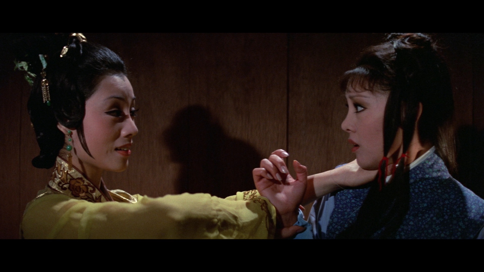 later Hong Kong Blu-ray. The Arrow one again has a new 2K restoration, improving in the usual areas over the prior scans with better film grain and deeper blacks. The usual Mandarin and English tracks are here with improved subtitles, and this time there are two equally worthy audio commentaries, both solo ones from Tony Rayns and Samm Deighan. The first track is full of historical detail and notes various literary antecedents including an intriguing connection to Jean Genet's The Balcony, while the second has great insights about the director's work, the complexities of the main female characters, and comparisons to more straightforward predecessors like Come Drink with Me. An alternate English main title sequence is also included along with the usual Mandarin and English trailers. Disc four is entirely devoted to the epic The 14 Amazons, a very complex and lavish showcase for virtually every significant actress available to Shaw Brothers in 1972. A straightforward synopsis of this is pretty much impossible in a paragraph, but basically it involves the intrigues, conflicts, and loves among the storied Yang family, whose saga