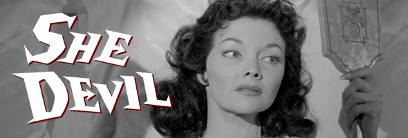 Released theatrically by Fox and then essentially orphaned, She Devil seemed to elude the home video gods for decades despite its occasional after hours appearances on TV into the 1980s. The 2013 Blu-Ray and DVD editions from Olive Films will be a completely new experience for many viewers. The HD transfer looks very good from what appears to be film elements kept in pretty solid shape; you'll see a little fleeting debris and damage here, but nothing major. The contrast levels look very solid throughout (though of course some of Blanchard's close ups tend to brighten up artificially, an apparent cinematographer judgment call), and it has a similar look to other scope B&W sci-fi outings like, say, Hand of Death or The Alligator People (which would be a great Blu-Ray double feature someday!). The DTS-HD mono audio also sounds robust enough considering it's about 90% dialogue. If you're a fan of '50s sci-fi monster films, or film noir for that matter, this modest treat will be quite a kick as it twists the femme fatale formula in quite a few interesting directions.