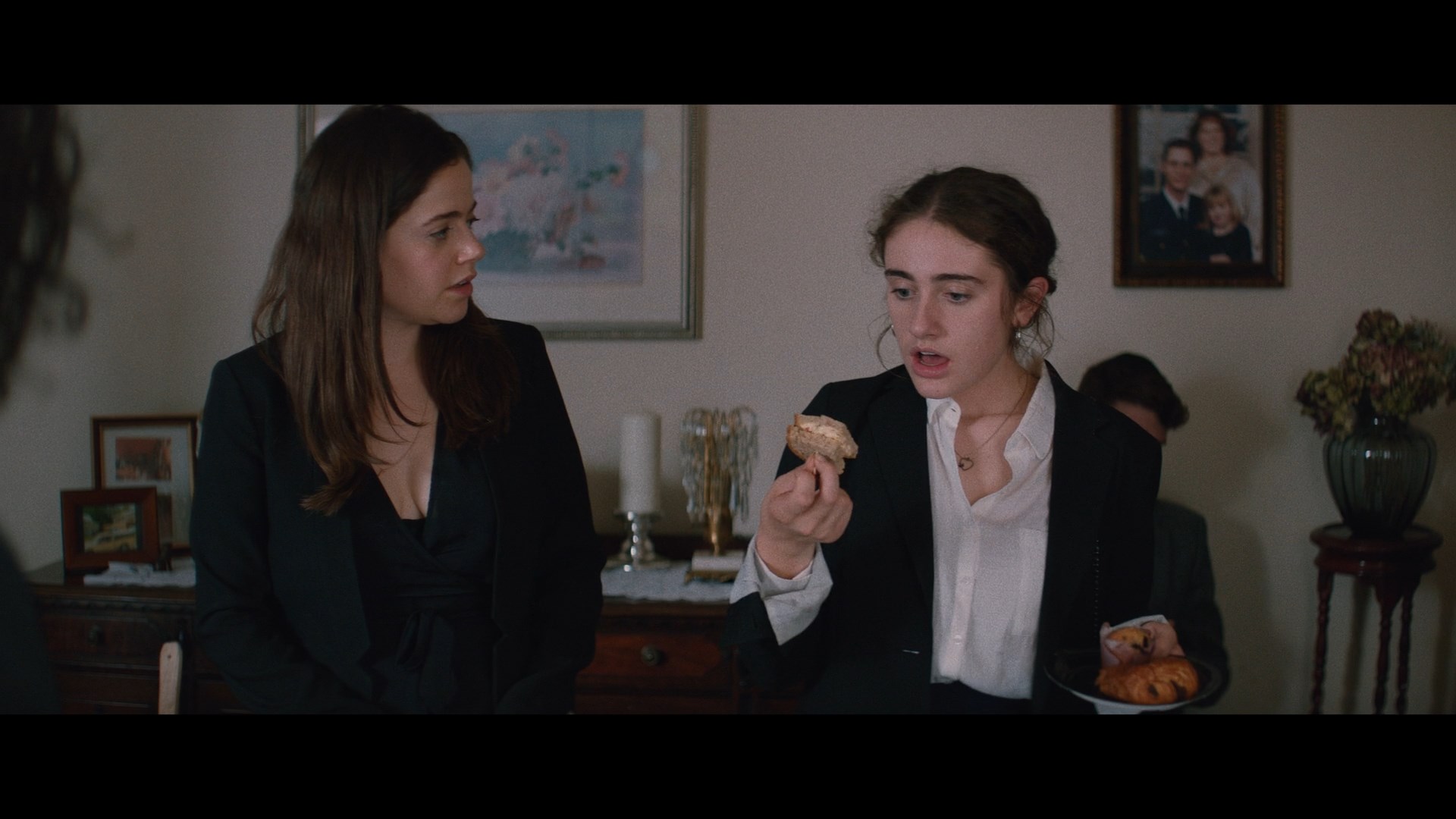 2020 title without any issues to report whatsoever; it looks great throughout. The DTS-HD MA English 5.1 track (with optional English SDH subtitles) is also excellent with sparing but very effective use of the rear channels when those strings kick in. (Though solicited as a Region A title, the disc is actually region free.) An audio commentary with Seligman, Sennott, and maybe Gordon is chaotic since they have the movie volume up loud and just react without introducing themselves, but there are some good bits scattered around in here with stories from the shoot. Also included are the original standard and red-band trailers and a Q&A with Seligman and Sennott (36m) via Zoom about the Herb Alpert-inspired poster art, the creation of the short film, the mandate that finally got the film in front of the cameras, the Jewish-themed films and TV shows used for reference, and the elements of psychological horror that crept in along the way.