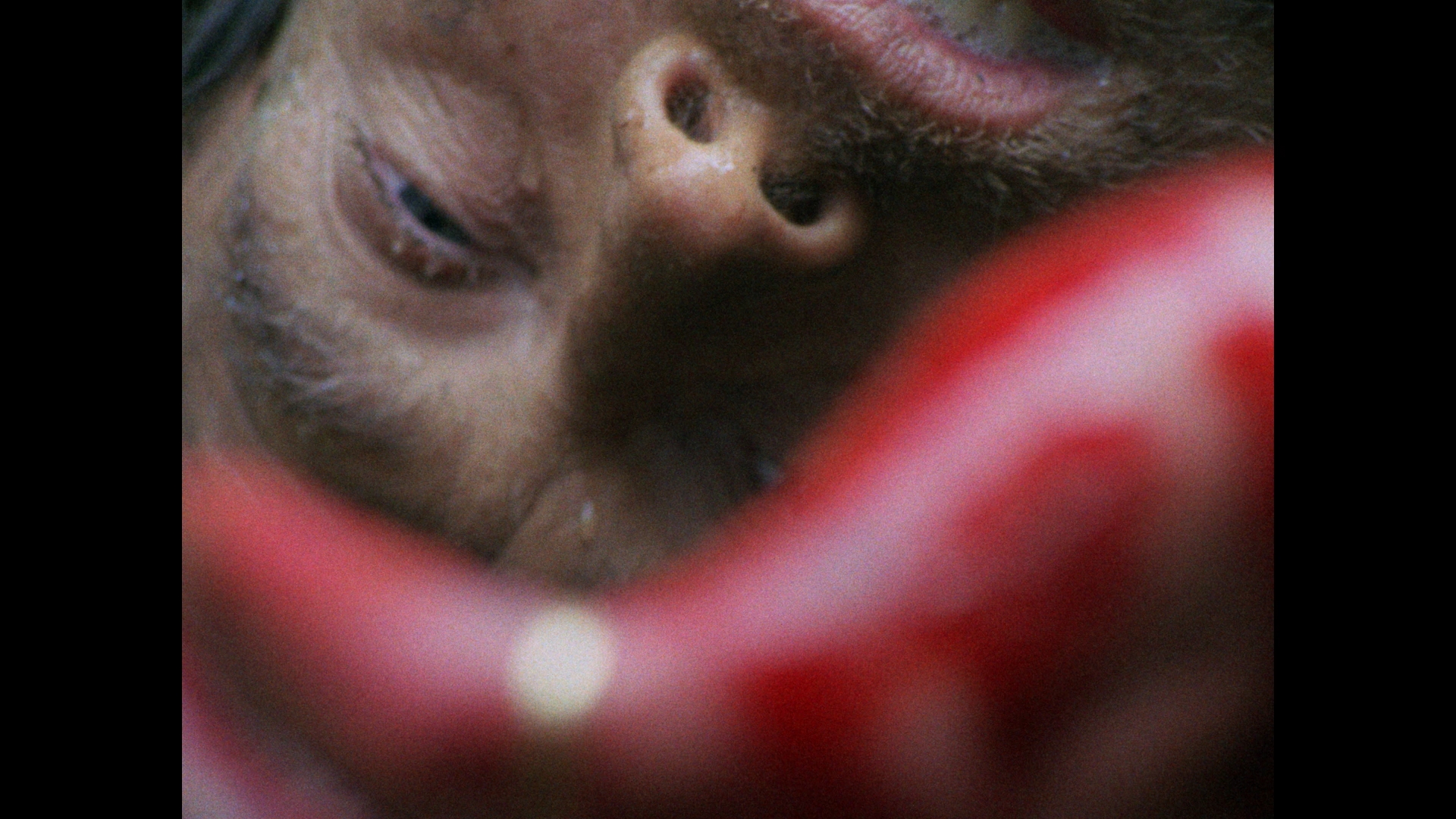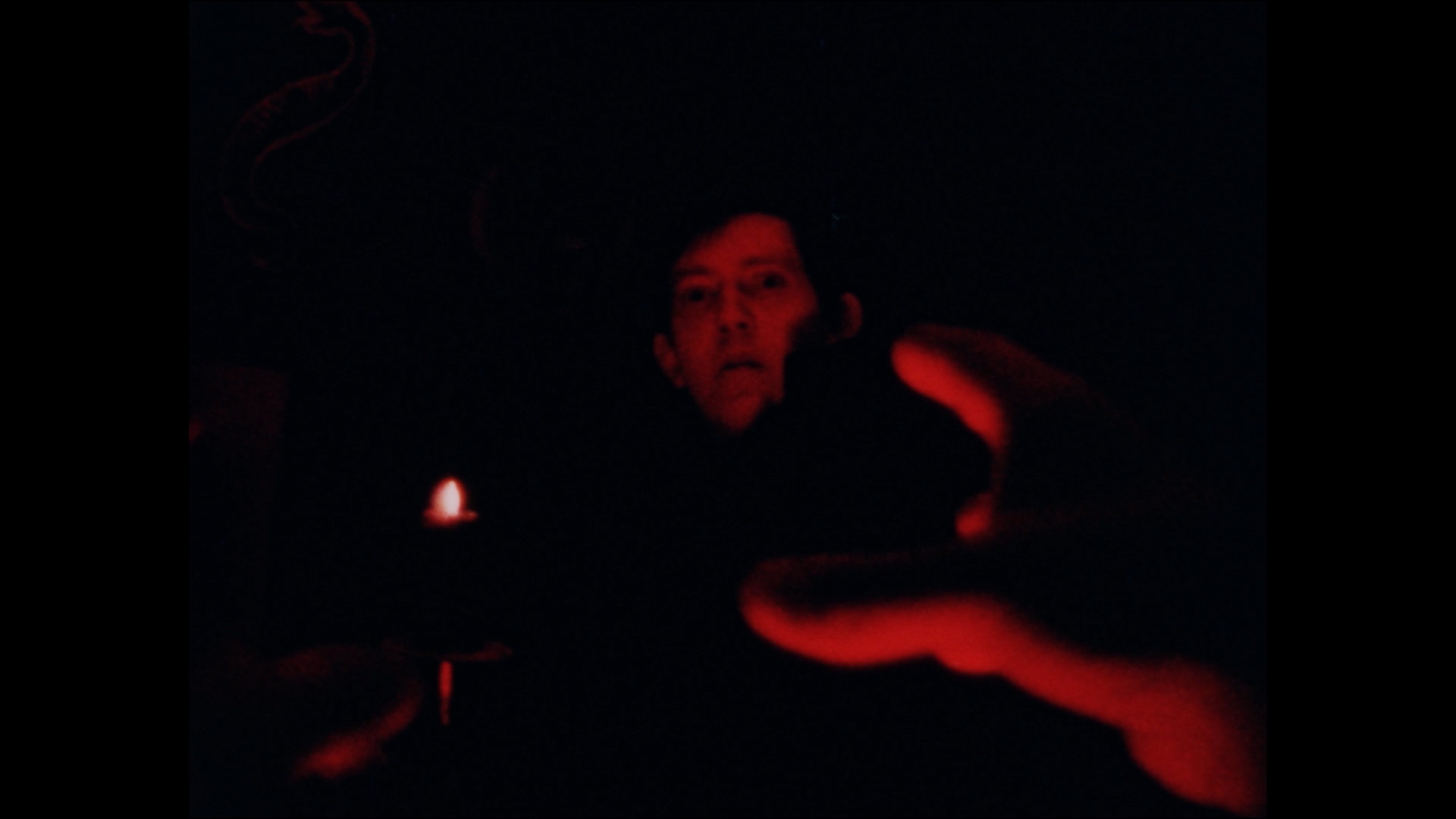 Enigmatic and devoid of any dialogue, it's a gritty mood piece that fits the aesthetic of the series well. Then things get charged up considerably with the 1976 Gothic shocker Red (23m58s) directed by Euro sex comedy actress Astrid Frank, which played as a supporting feature in the U.K. to Damien: Omen II and probably brought the house down. Horror vet Ferdy Mayne stars as a painter who gets lost in the countryside and finds lodgings at an inn run by Frank herself. There he spends company with a trio of troubadours (Horror House's Mark Wynter, Brit TV staple Gabrielle Drake, and actor-singer