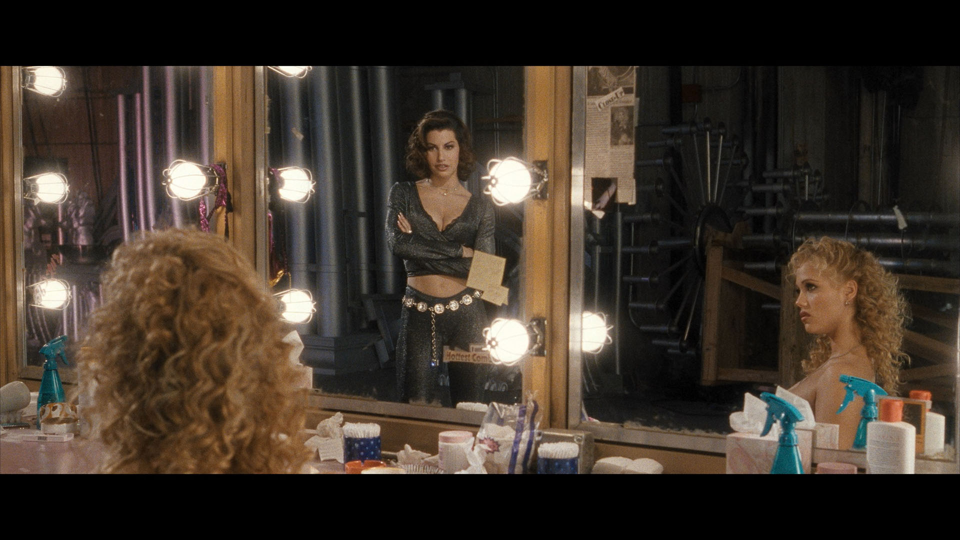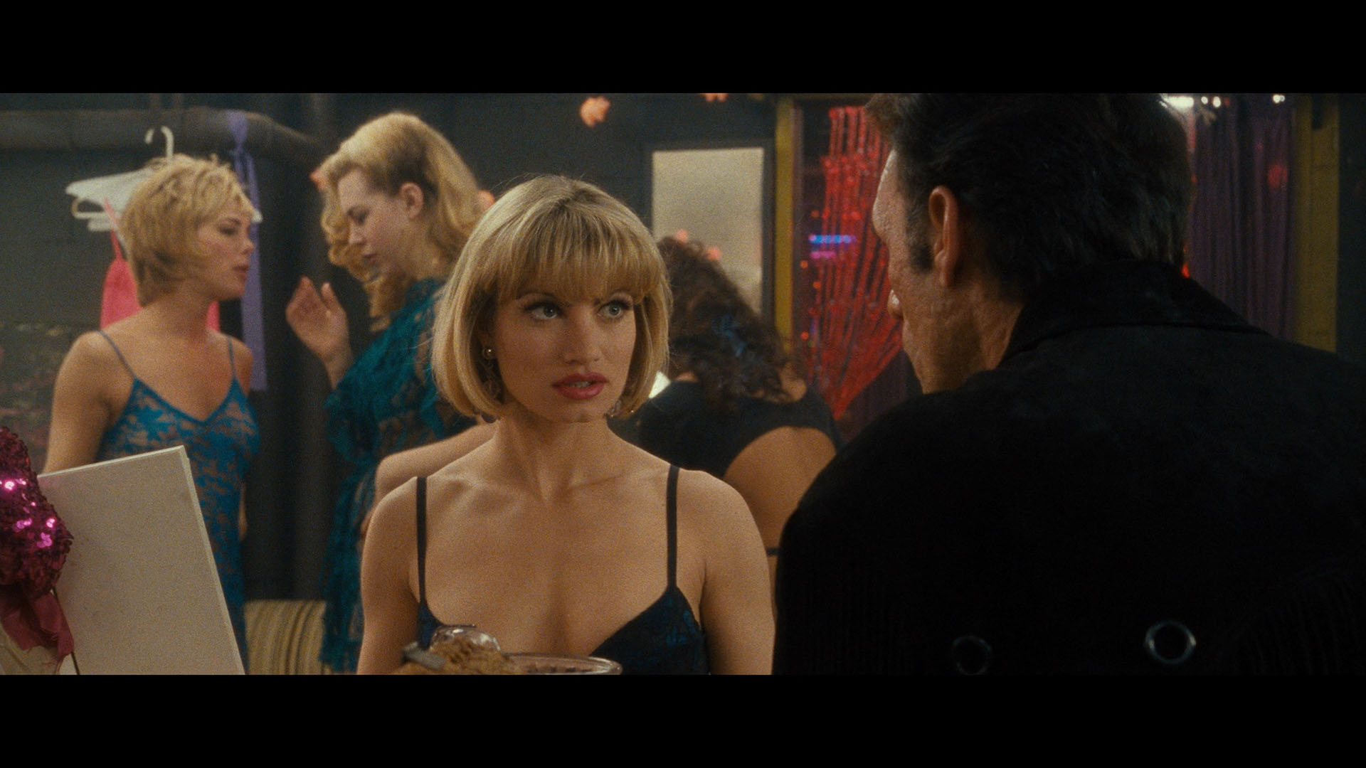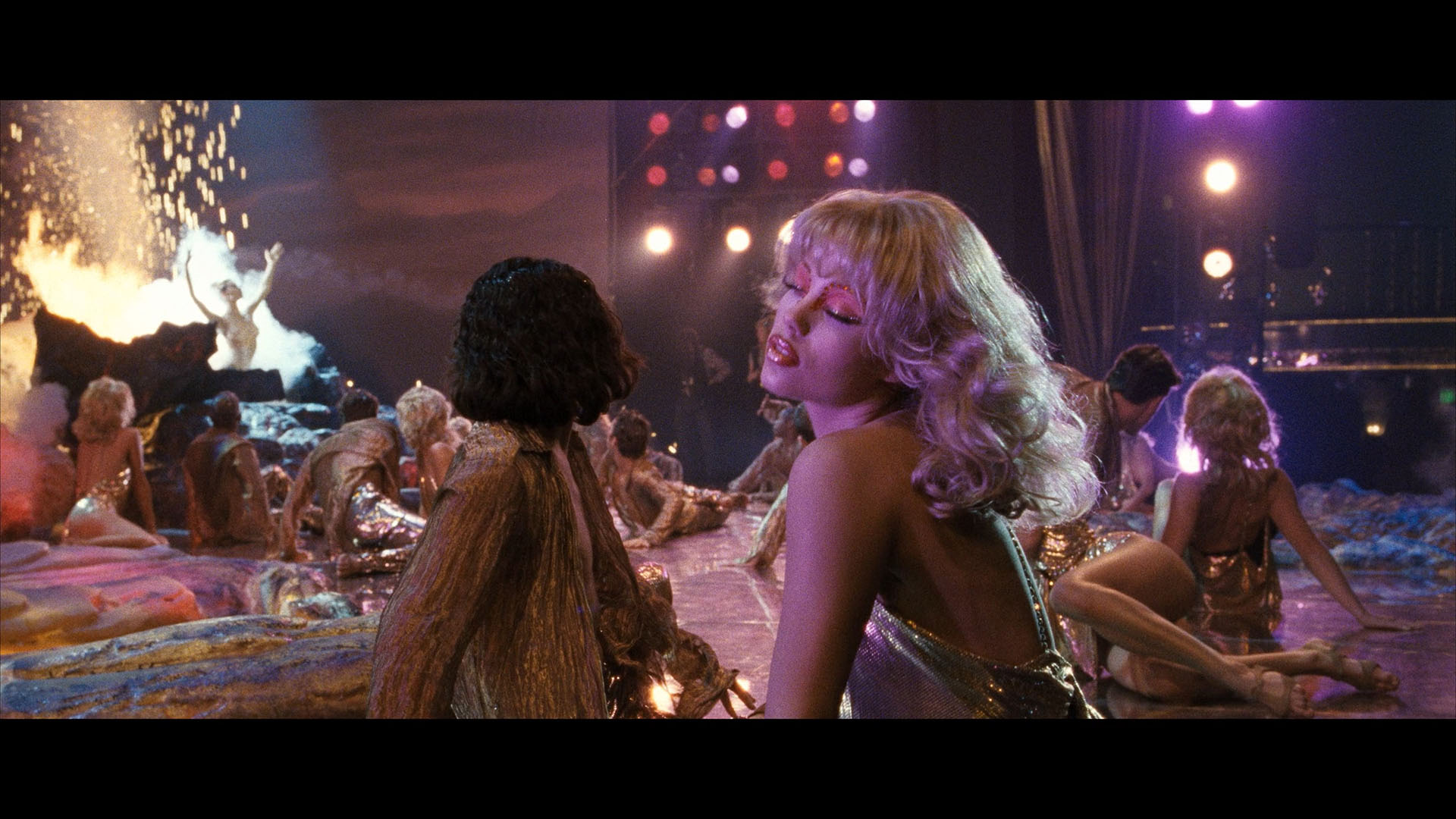 and look accurate throughout, finally freed from that weird gold saturation that marred the European releases. The film also features the usual preexisting commentary track, plus 5.1 and 2.0 DTS-HD MA options (both sound great with plenty of surround activity) and optional English SDH subtitles. The UHD doesn't have video supplements as usual to allow the film itself to max out the bit rate, while the first Blu-ray has the theatrical trailer. Ported over from the earlier releases are the Verhoeven "More Vegas Than Vegas" interview, "A Showgirl's Diary," the lap dance tutorial, and a behind-the-scenes promotional featurette (4m55s). The new extras kick off with "You Gotta Gamble if You’re Gonna Win" (14m25s), a great new interview with Eszterhas about his first meeting with Verhoeven, the project's ties to Costa-Gavras(!) and a potential remake of All About Eve, the development of the script and extensive research with real dancers, the origin of the name Nomi, and the issues with making an NC-17 film. "All that Glitters: Filming Showgirls" (11m55s) cuts the earlier interview with Vacano and a new one with performance lighting designer Peter Morse to cover the process of creating the film's look, the lighting of the dancers' bodies, and the flexibility needed to give it the right hyper-real aesthetic. In "The Rhythm of Chaos" (16m11s), co-editors Mark Helfrich and Mark Goldblatt chat separately about the process of corralling the footage in post-production with Verhoeven and having a blast crafting a button-pushing film they felt was misunderstood at the time. In "Born to Dance" (19m), Riffel shares her own story about her lifelong love of dance, the process of doing auditions, her recording career, the process of playing Penny, and her embracing of the film's legacy. Finally in "Free Lap Dance with Every Large Popcorn: The Cult of Showgirls" (13m12s), Midnight Mass Podcast hosts Peaches Christ and Michael Varrati examine the film's hostile initial reception and its rise to cultdom via an audience who got onto its delirious wavelength. The package also comes with a 40-page book featuring essays by Elizabeth Purchell, Abbey Bender and Adam Nayman.